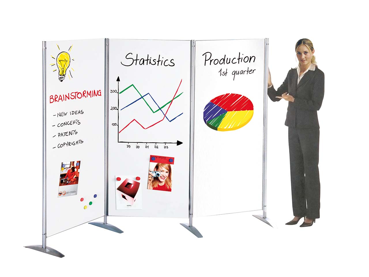 Stellen Sie sich Ihre ganz persönliche Stellwand zusammen. Das Whiteboard-Element "Pol" hilft Ihnen dabei und lässt sich ganz leicht ohne Werkzeuge anbringen. Beidseitig mit Boardmarkern beschriftbar. Lässt sich mit separat erhältlichen Rollen weiter ausstatten. Lieferung inkl. einer der zwei benötigten Abschlußsäulen. B 80 x H 175 cm.
