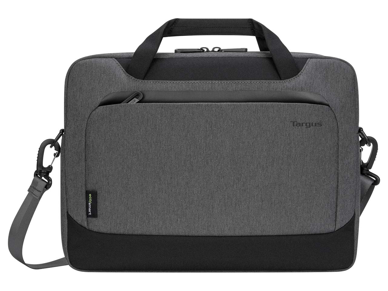 Die Laptoptasche besteht anteilig aus 48 % Post-Consumer-Recycling-Material, das aus 12 PET-Flaschen gewonnen wurde.