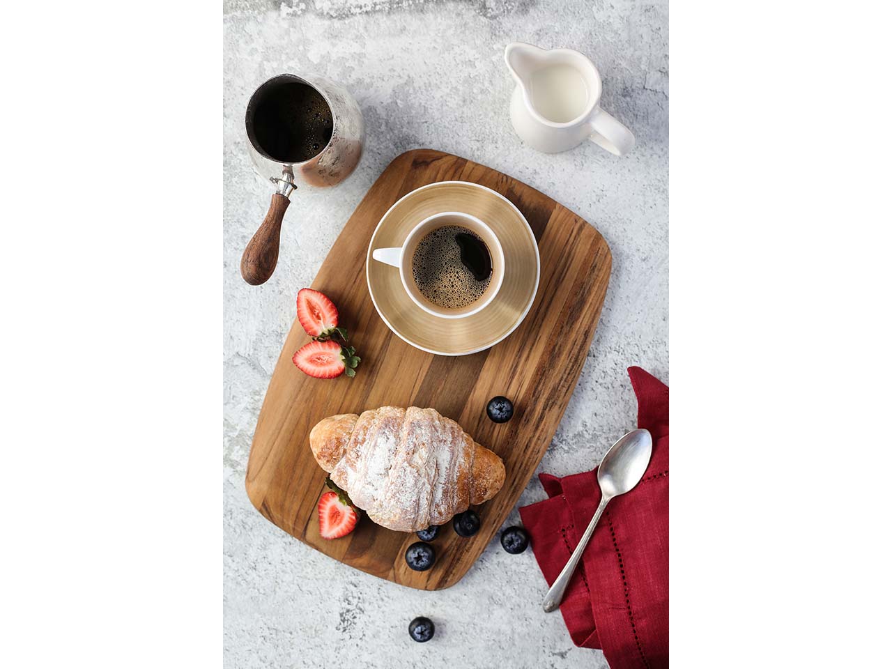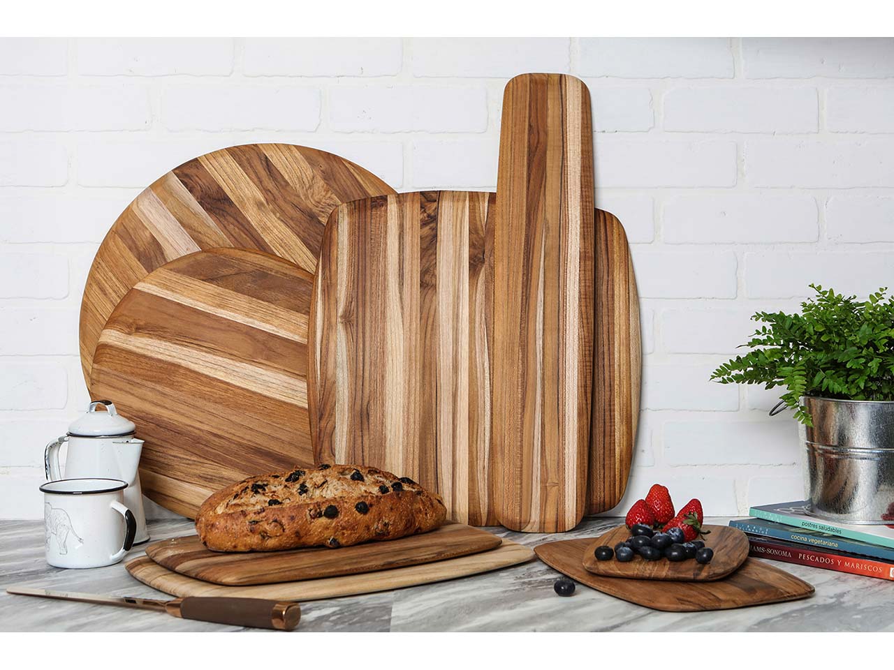 Dieses stilvolle Brett ist einfach praktisch: Es kann zum Schneiden oder zum Servieren verwendet werden! Das Teakholz aus vorbildlicher Forstwirtschaft ist mit Leinöl oberflächenbehandelt. Dadurch entsteht eine angenehme Haptik. Gleichzeitig punktet das Servierbrett mit seiner einzigartigen Optik und der besonderen Maserung. Das Schneide- und Servierbrett hat abgerundete Kanten, was die Handhabung besonders komfortabel macht. Das Holz ist schonend zu Klingen, sodass sich hier Gemüse, Fisch, Fleisch und Co. problemlos schneiden lassen.