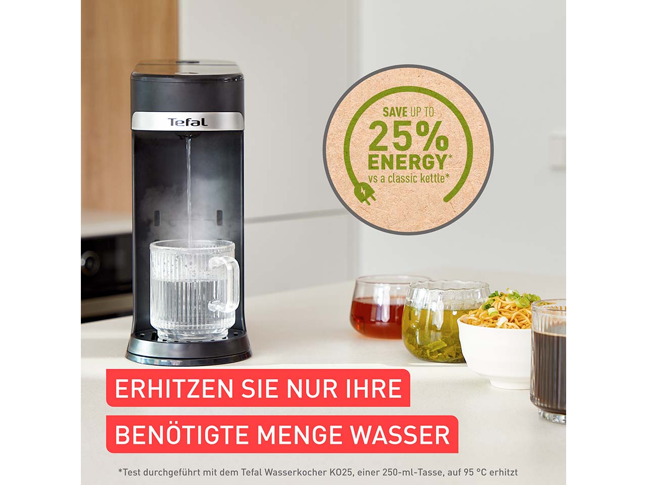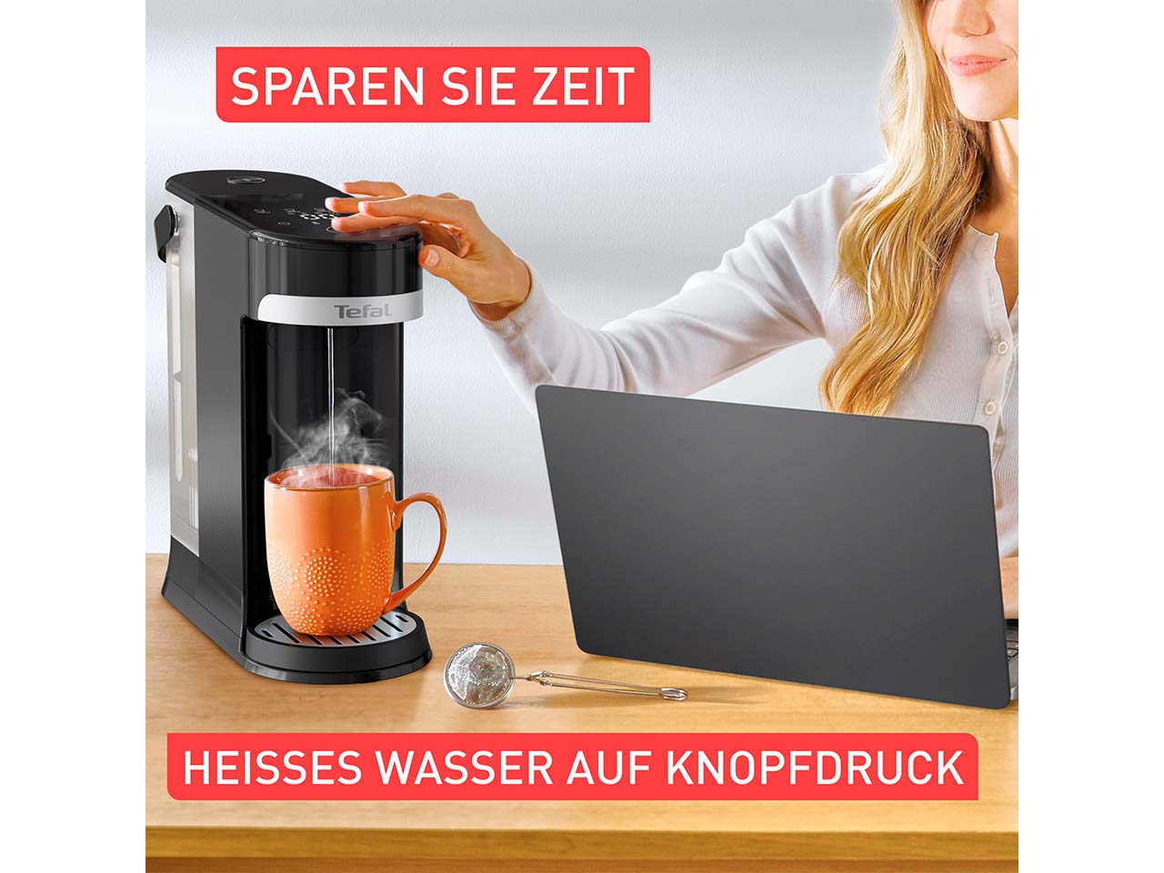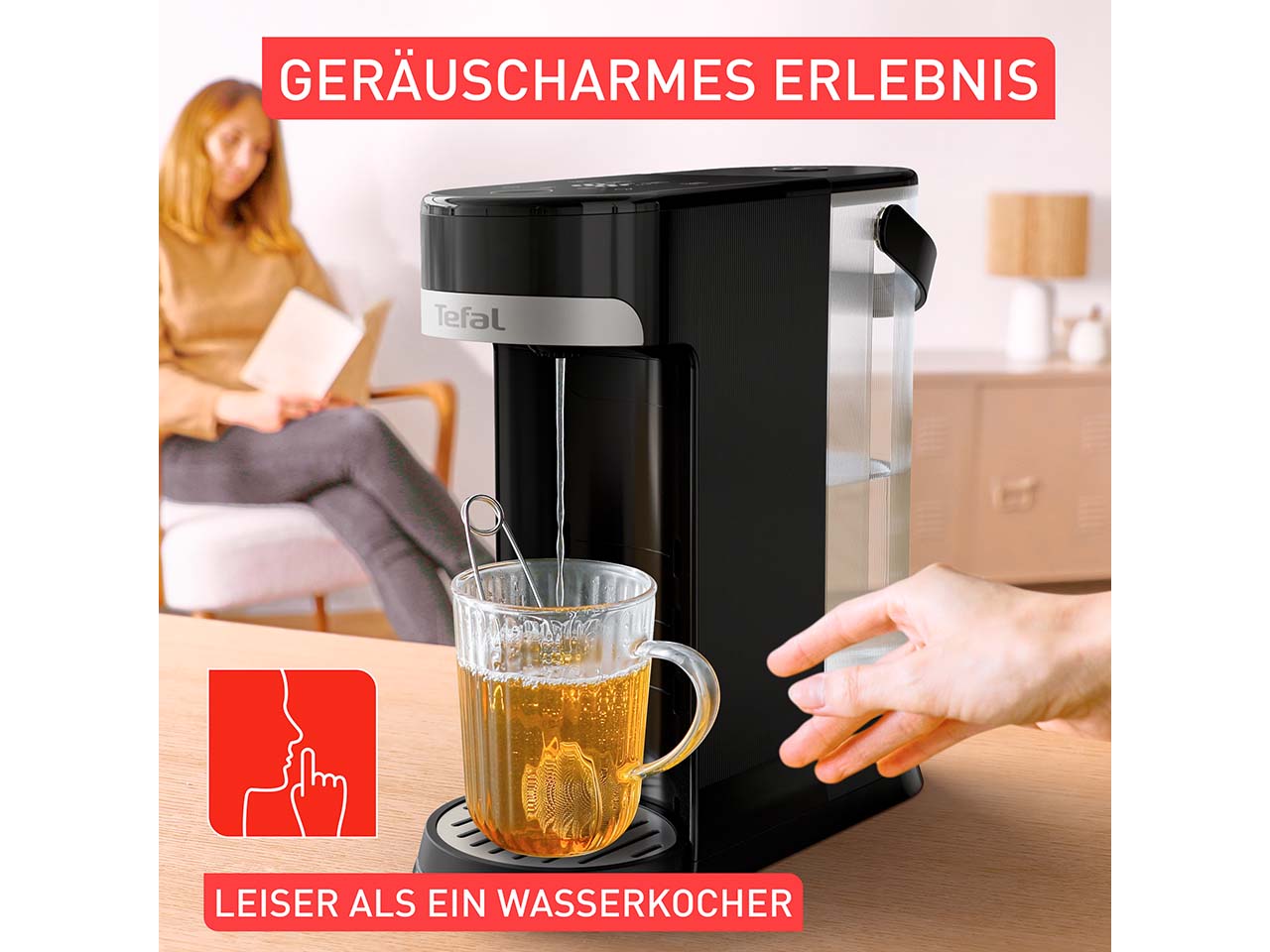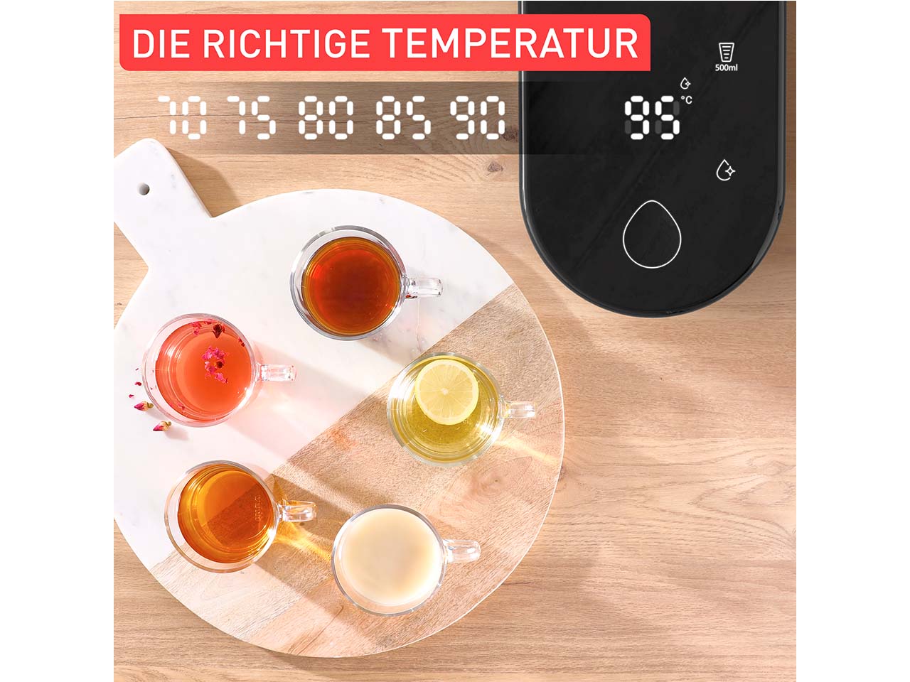 Einfach den Knopf drücken und schon kommt heißes Wasser! So einfach funktioniert der Heißwasserspender mit Instant Brew Technologie und Edelstahl-Heizrohr. Das Gerät ist geräuschärmer als ein Wasserkocher und ermöglicht es, die genaue Wassermenge (zwischen 150 ml und 500 ml) sowie die exakte Temperatur einzustellen (in Fünferschritten zwischen 70 °C und 95 °C). Die Einstellung erfolgt über das digitale Bedienfeld. Es lassen sich außerdem vier verschiedene Tassenhöhen einstellen. Das Befüllen und das Reinigen gelingen ganz einfach. Ein praktisches Küchengerät für alle, die Tee und Co. lieben.