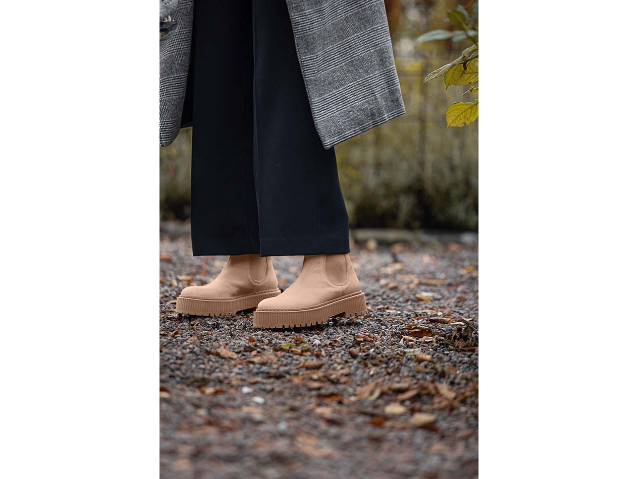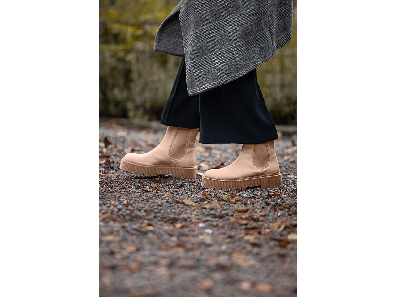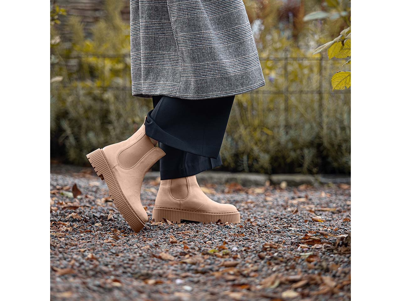 Ein Lichtblick für triste Herbst- und Wintertage: Die sanfte Farbgebung dieser Stiefeletten harmoniert hervorragend mit dem erstklassigen Tragekomfort. Die Chelsea Boots überzeugen mit ihrer einzigartigen Optik, die durch die klobige Sohle entsteht. Dadurch erhält der klassische Look eine moderne Note. Dazu passt das pflanzlich gegerbte Nubukleder, das mit seiner rauen, fast samtigen Oberfläche perfekt durch die kühle Jahreszeit begleitet. Das aufgeraute Leder hat eine hohe Atmungsaktivität, sodass Frau sich den ganzen Tag in den Schuhen wohlfühlen kann. Dazu tragen auch die Fütterung aus chromfreiem Leder und das herausnehmbare Fußbett bei. Also einfach reinschlüpfen und Tragekomfort der Extraklasse genießen!