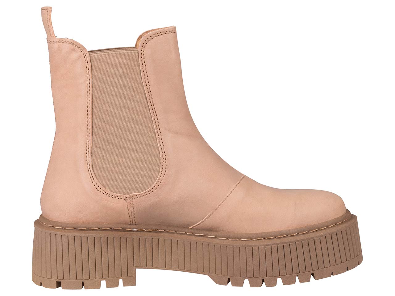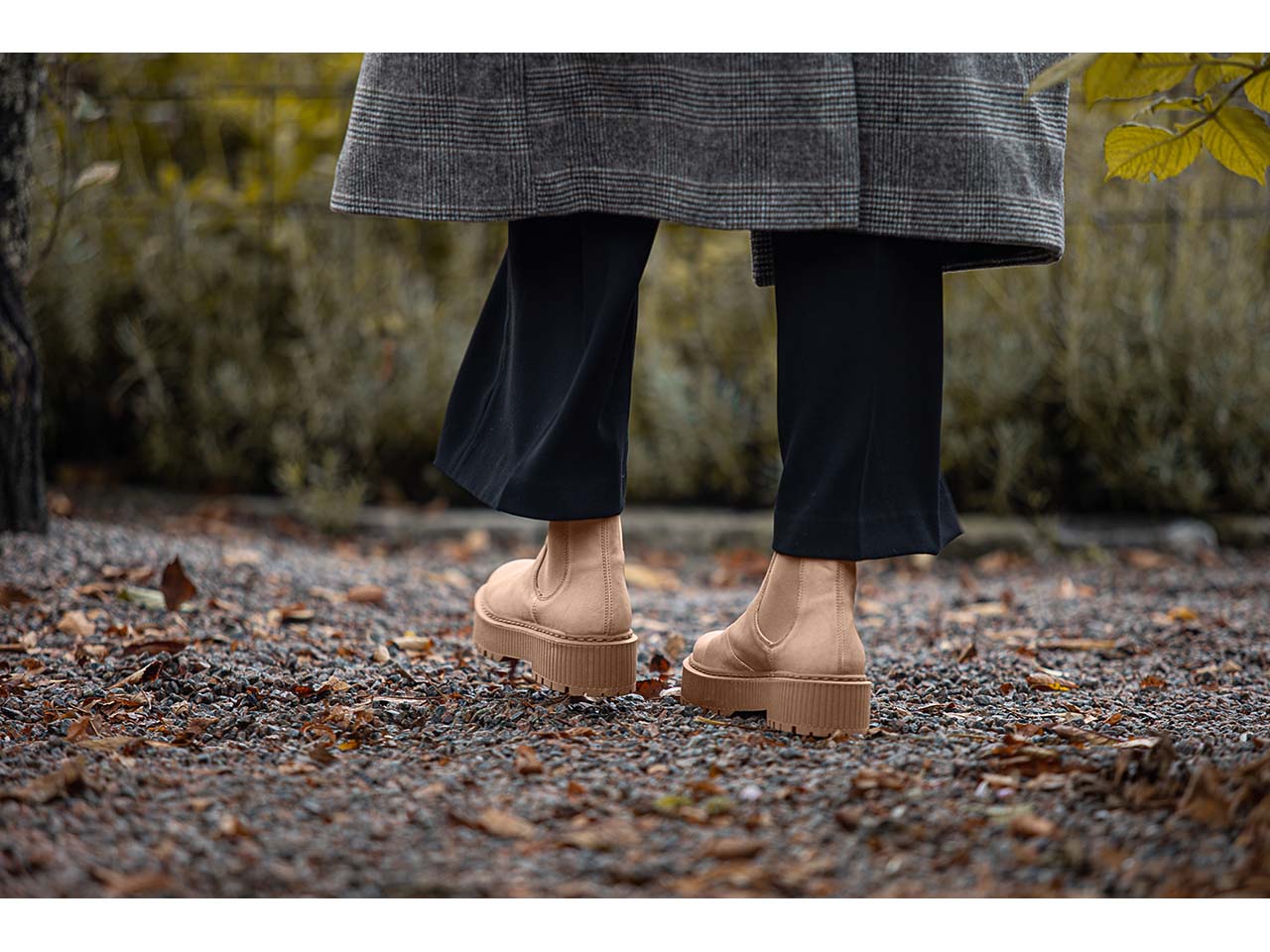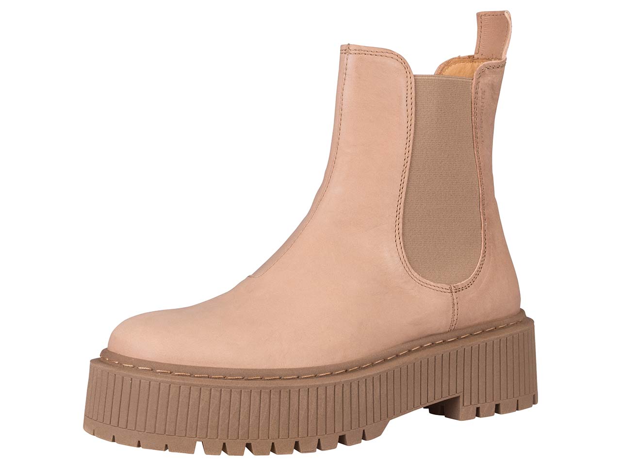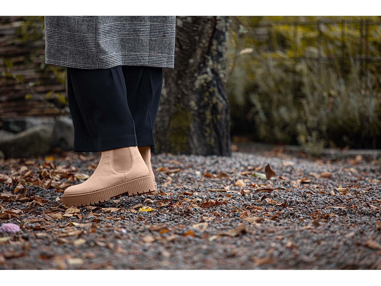 Ein Lichtblick für triste Herbst- und Wintertage: Die sanfte Farbgebung dieser Stiefeletten harmoniert hervorragend mit dem erstklassigen Tragekomfort. Die Chelsea Boots überzeugen mit ihrer einzigartigen Optik, die durch die klobige Sohle entsteht. Dadurch erhält der klassische Look eine moderne Note. Dazu passt das pflanzlich gegerbte Nubukleder, das mit seiner rauen, fast samtigen Oberfläche perfekt durch die kühle Jahreszeit begleitet. Das aufgeraute Leder hat eine hohe Atmungsaktivität, sodass Frau sich den ganzen Tag in den Schuhen wohlfühlen kann. Dazu tragen auch die Fütterung aus chromfreiem Leder und das herausnehmbare Fußbett bei. Also einfach reinschlüpfen und Tragekomfort der Extraklasse genießen!