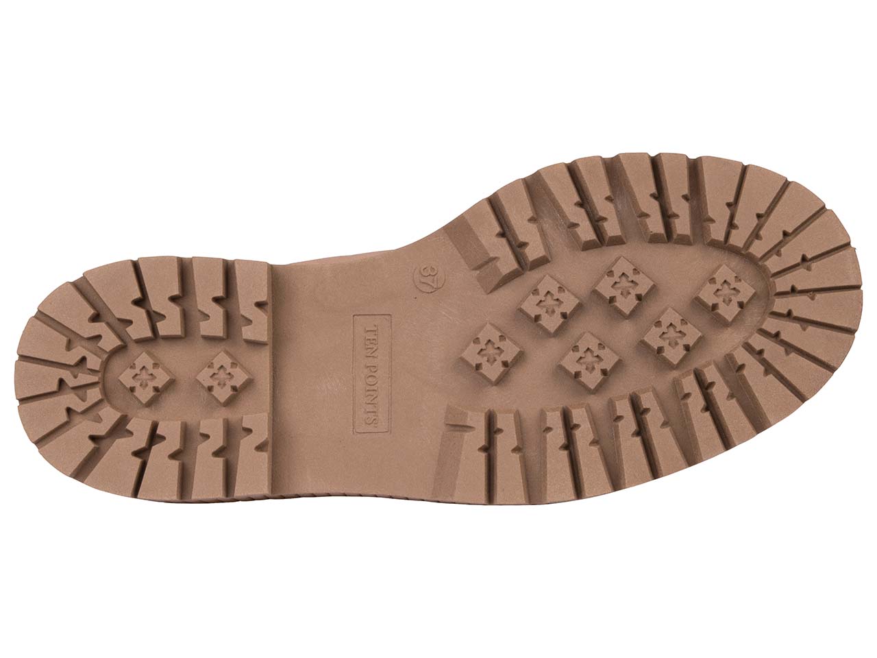 Die Damenstiefel von Ten Points werden wie alle Schuhe des Unternehmens in Schweden entworfen. Die Fertigung von Hand erfolgt in Portugal. Dabei werden nachhaltige Produktionsmethoden und Geschäftspraktiken verfolgt. Ten Points widmet sich der slow fashion: Das langlebige Schuhwerk kann und soll länger als eine Saison getragen werden.