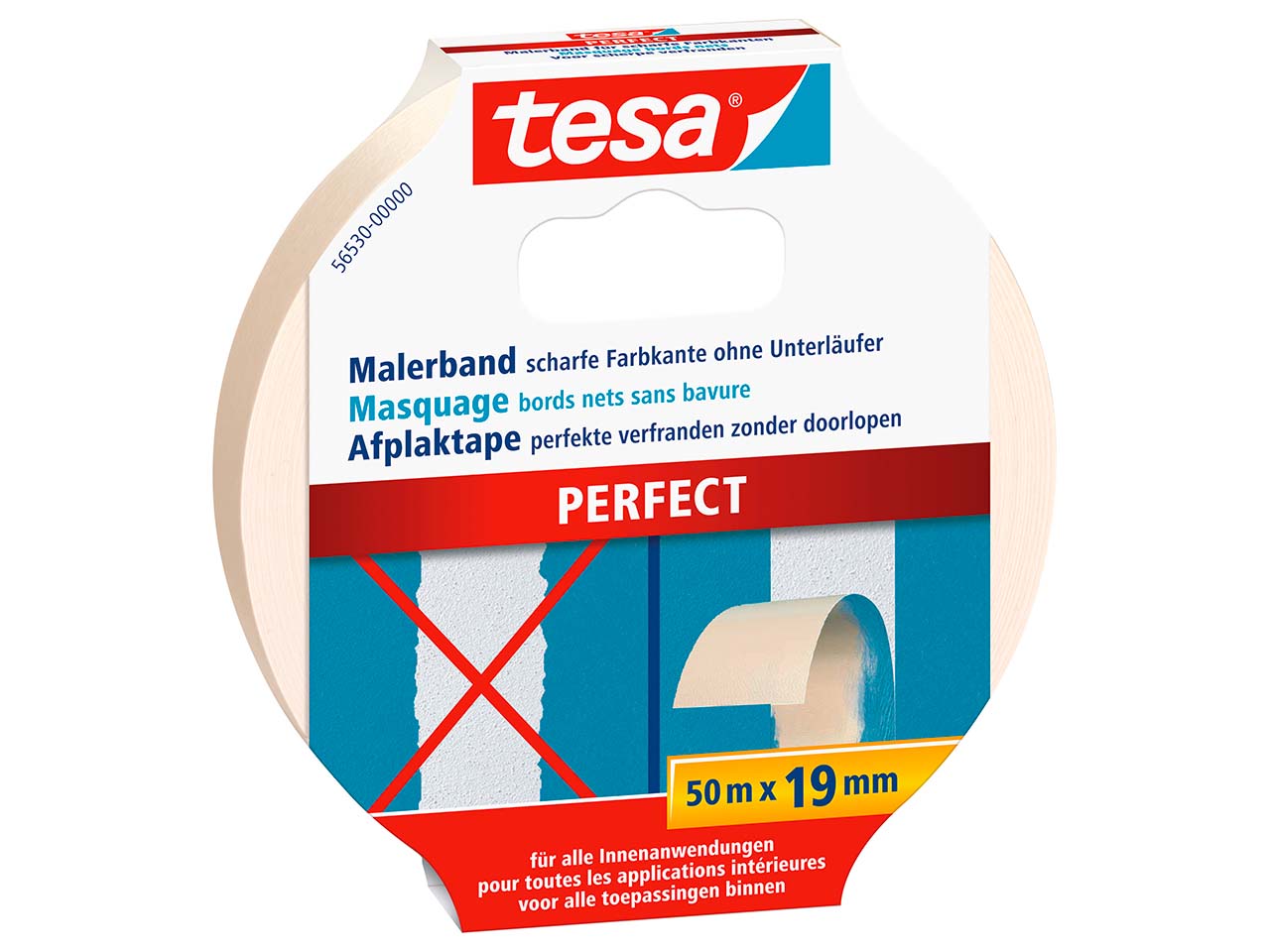 Das tesa Kreppband "Perfect" aus flachem Washi-Spezialpapier eignet sich optimal, um Farbunterläufe zu verhindern und scharfe Farbkanten entstehen zu lassen. Das universelle Malerband für alle Innenanwendungen hat eine extreme Reißfestigkeit. Innerhalb von 14 Tagen lässt sich das Kreppband kinderleicht und ohne Rückstände wieder entfernen. Ideal für professionelle Malerarbeiten und schützt beim Streichen z.B. Sockelleiste oder Treppenränder.