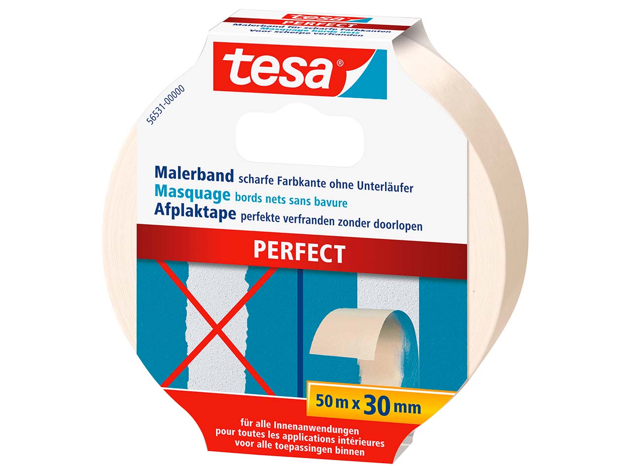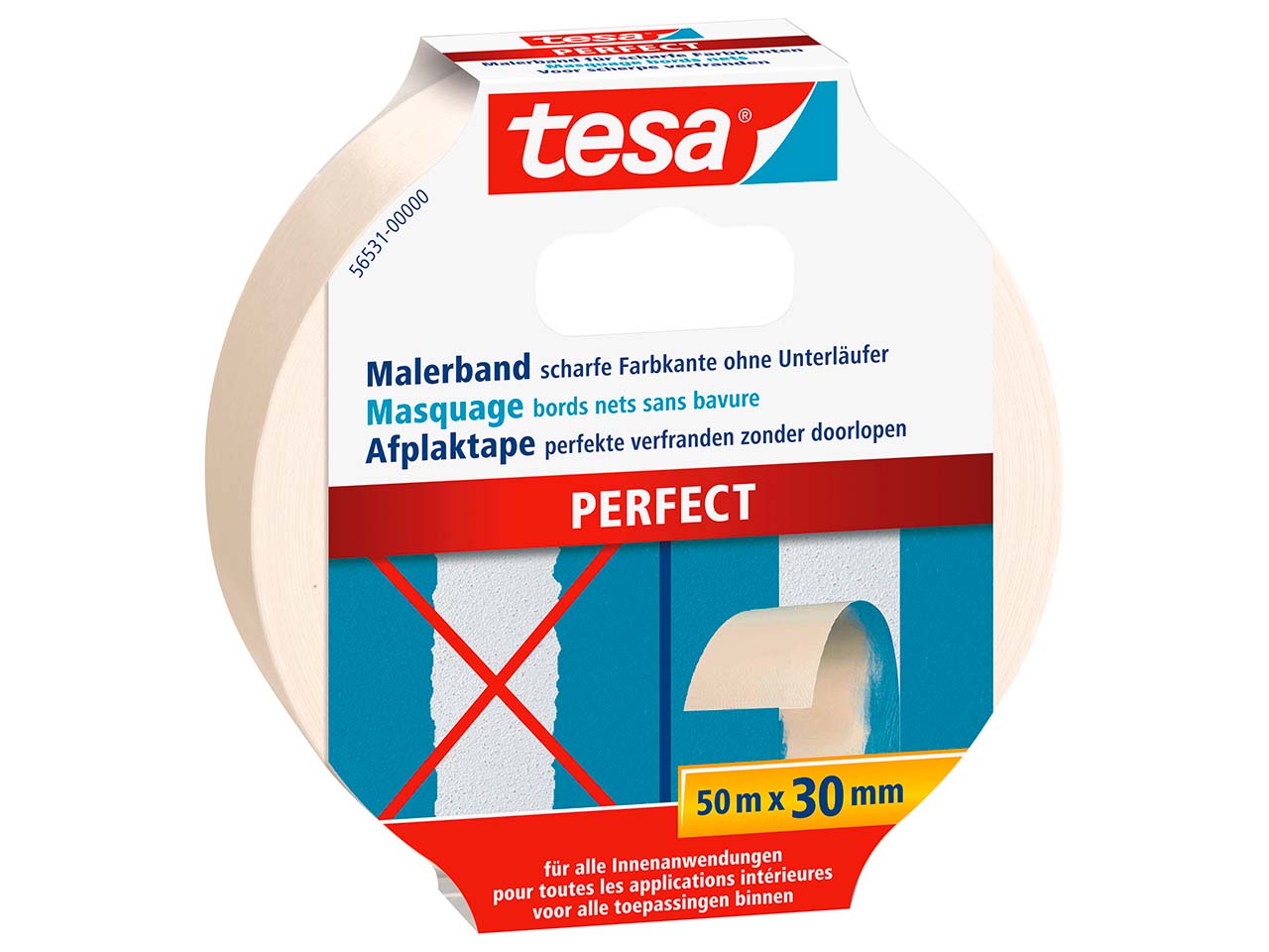 Das tesa Kreppband "Perfect" aus flachem Washi-Spezialpapier eignet sich optimal, um Farbunterläufe zu verhindern und scharfe Farbkanten entstehen zu lassen. Das universelle Malerband für alle Innenanwendungen hat eine extreme Reißfestigkeit. Innerhalb von 14 Tagen lässt sich das Kreppband kinderleicht und ohne Rückstände wieder entfernen. Ideal für professionelle Malerarbeiten und schützt beim Streichen z.B. Sockelleiste oder Treppenränder.