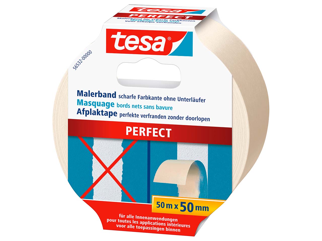 Das tesa Kreppband "Perfect" aus flachem Washi-Spezialpapier eignet sich optimal, um Farbunterläufe zu verhindern und scharfe Farbkanten entstehen zu lassen. Das universelle Malerband für alle Innenanwendungen hat eine extreme Reißfestigkeit. Innerhalb von 14 Tagen lässt sich das Kreppband kinderleicht und ohne Rückstände wieder entfernen. Ideal für professionelle Malerarbeiten und schützt beim Streichen z.B. Sockelleiste oder Treppenränder.