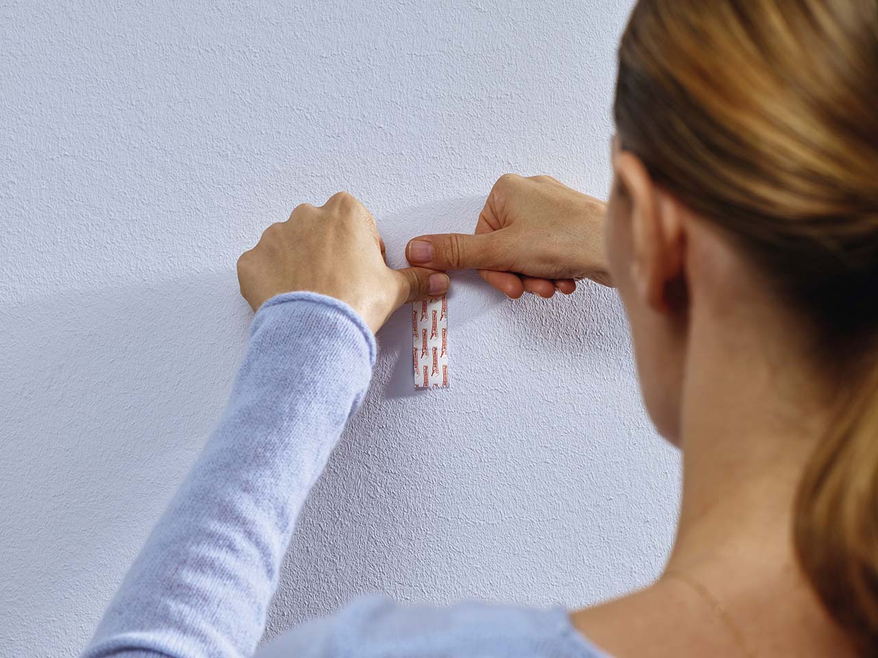 Vor der Befestigung sollte der Untergrund mit einem trockenen, staubfreien Tuch gereinigt werden. Drücken Sie die Schraube für mindestens fünf Sekunden gleichmäßig und fest an. Nach dem Gebrauch ist die Klebeschraube rückstandsfrei ablösbar. Bei Bedarf ist sie auch mehrfach nutzbar. Dafür benötigen Sie nur einen neuen, passenden Klebestreifen.