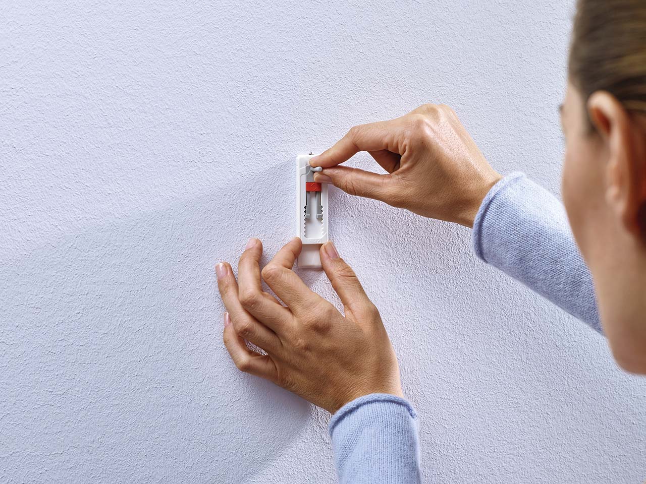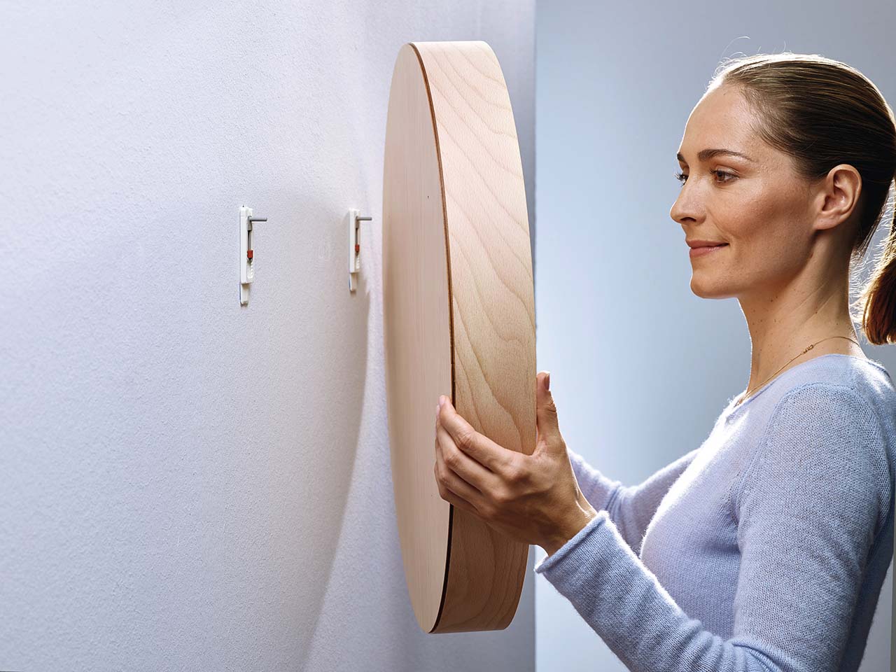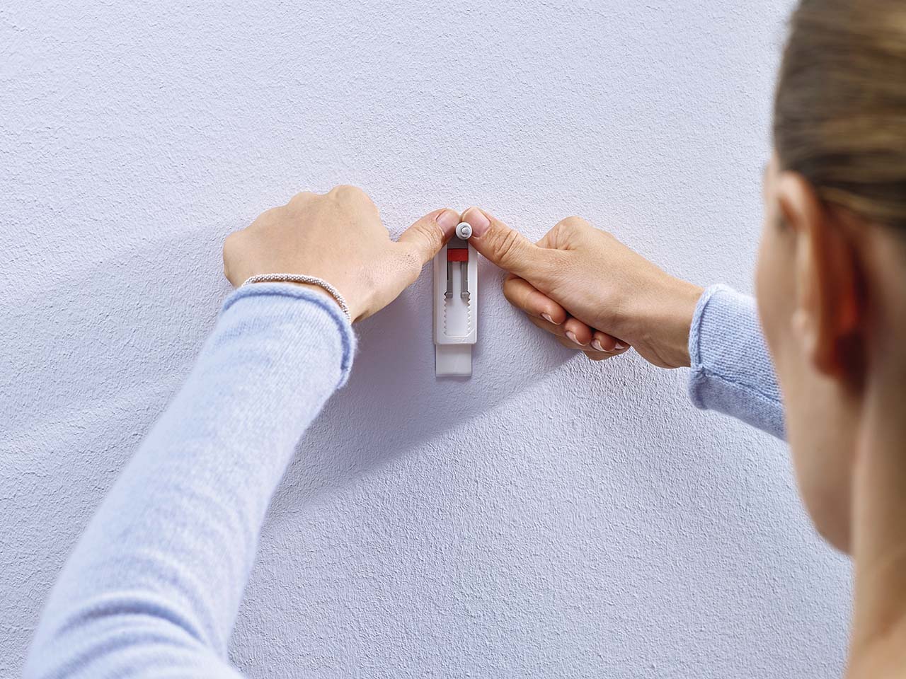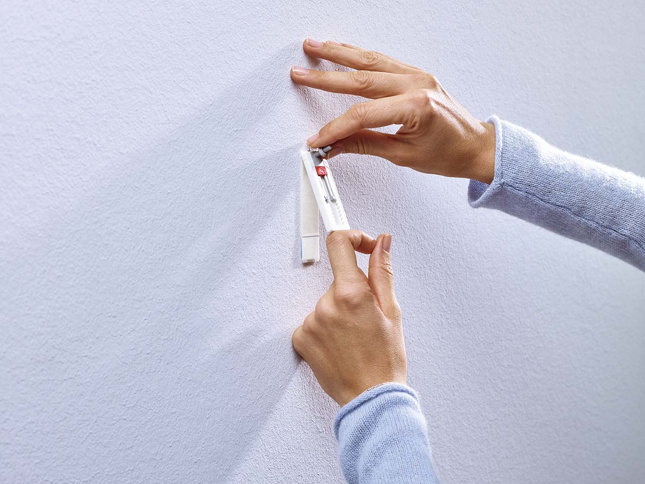 Die tesa Klebeschraube eignet sich ideal, um Objekte mit bis zu 1 kg Gewicht an strukturierten und empfindlichen Untergründen wie Tapeten und Putz anzubringen. Bei der Verwendung von zwei Schrauben können sogar Gegenstände bis 2 kg gehalten werden. Es werden für die Anbringung keine Werkzeuge gebraucht und Schäden am Untergrund werden vermieden. Das anzubringende Objekt sollte bereits über vorgebohrte Aufhängen verfügen.
