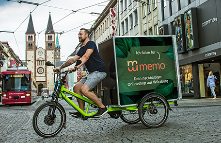 memo arbeitet in verschiedenen deutschen Großstädten mit Radlogistikern zusammen, um die Gesundheits- und Umweltbelastung in Ballungsgebieten zu reduzieren. Innerhalb des Berliner S-Bahn-Rings sowie in Innenstadtbereichen weiterer Städte werden Waren bis 250 kg auf der letzten Meile mit dem Elektro-Lastenrad geliefert. Die Räder fahren mit 100 % Ökostrom und sind so emissionsfrei. Abgas- und Lärmbelastung werden stark reduziert.