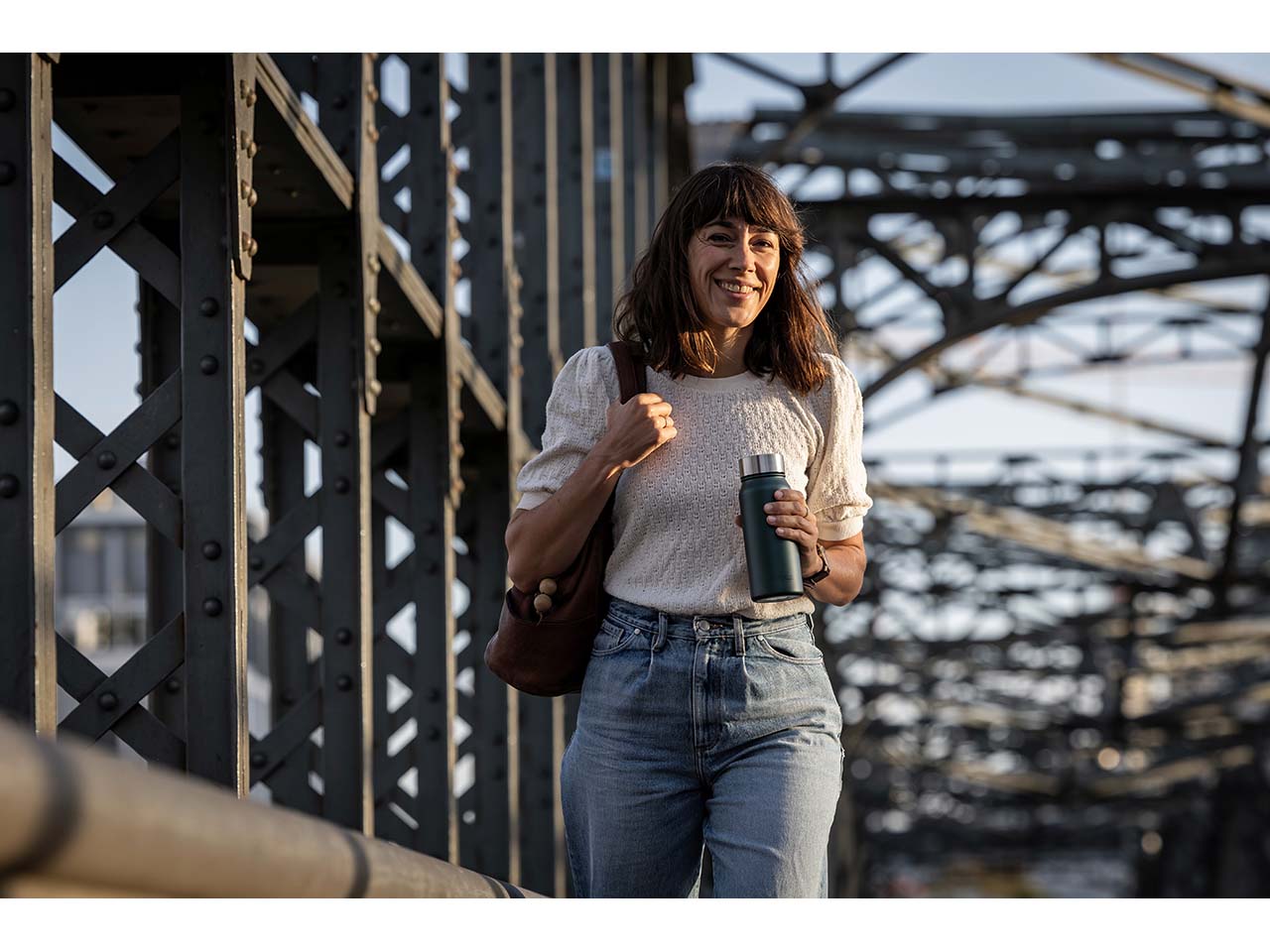 Kaffeegenuss unterwegs – ohne Plastik oder Pappe! Der elegante, schlanke Thermobecher ermöglicht es dank innovativem 360°-Trinkverschluss, das Lieblingsgetränk bequem per Knopfdruck zu genießen. Die Isolierung hält Heißgetränke wie Kaffee oder Tee bis zu acht Stunden warm und sorgt dafür, dass Kaltgetränke bis zu 16 Stunden kühl bleiben. Der Becher besteht aus robustem, geschmacksneutralem Edelstahl und ist spülmaschinenfest.