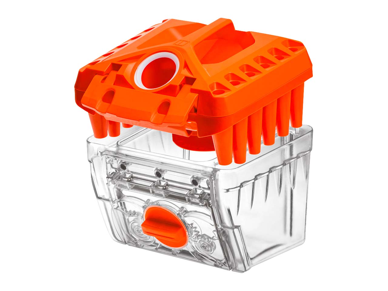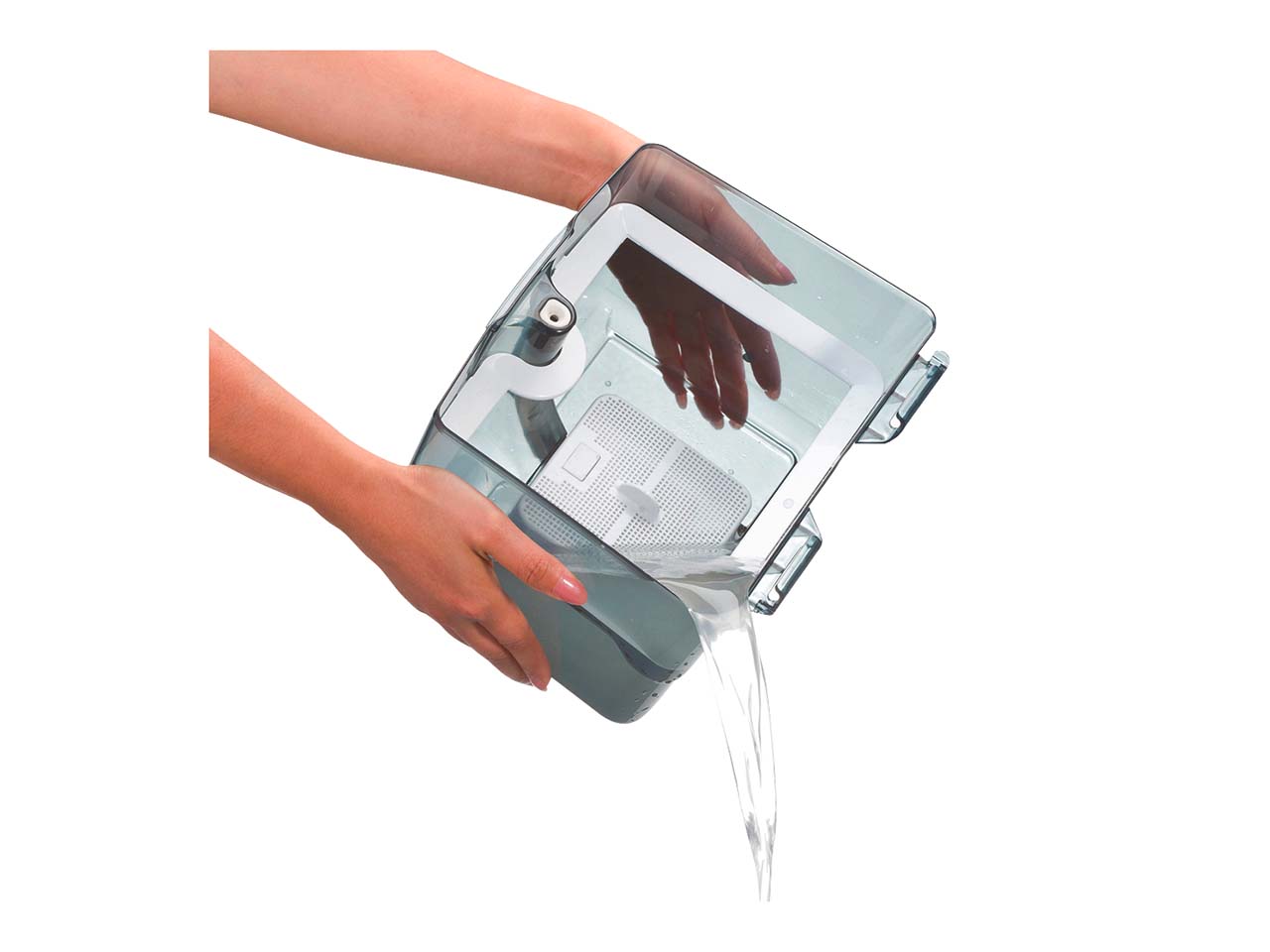 Der Staubsauger verfügt über zwei Filterboxen: Die Zyklonbox ist ideal für das tägliche Saugen. Der Staub wird mit Luftwirbeln in der Box gefangen. Besonders ist hierbei, dass der Feinstaubanteil in einem separaten Fach aufgefangen und so nicht mit dem Großschmutz zusammen ausgekippt wird. Das ist ideal für empfindliche Menschen und Stauballergiker. Das Feinstaubfach wird mit Wasser ausgepült, sodass die Feinstäube nicht mehr in die Luft gelangen.