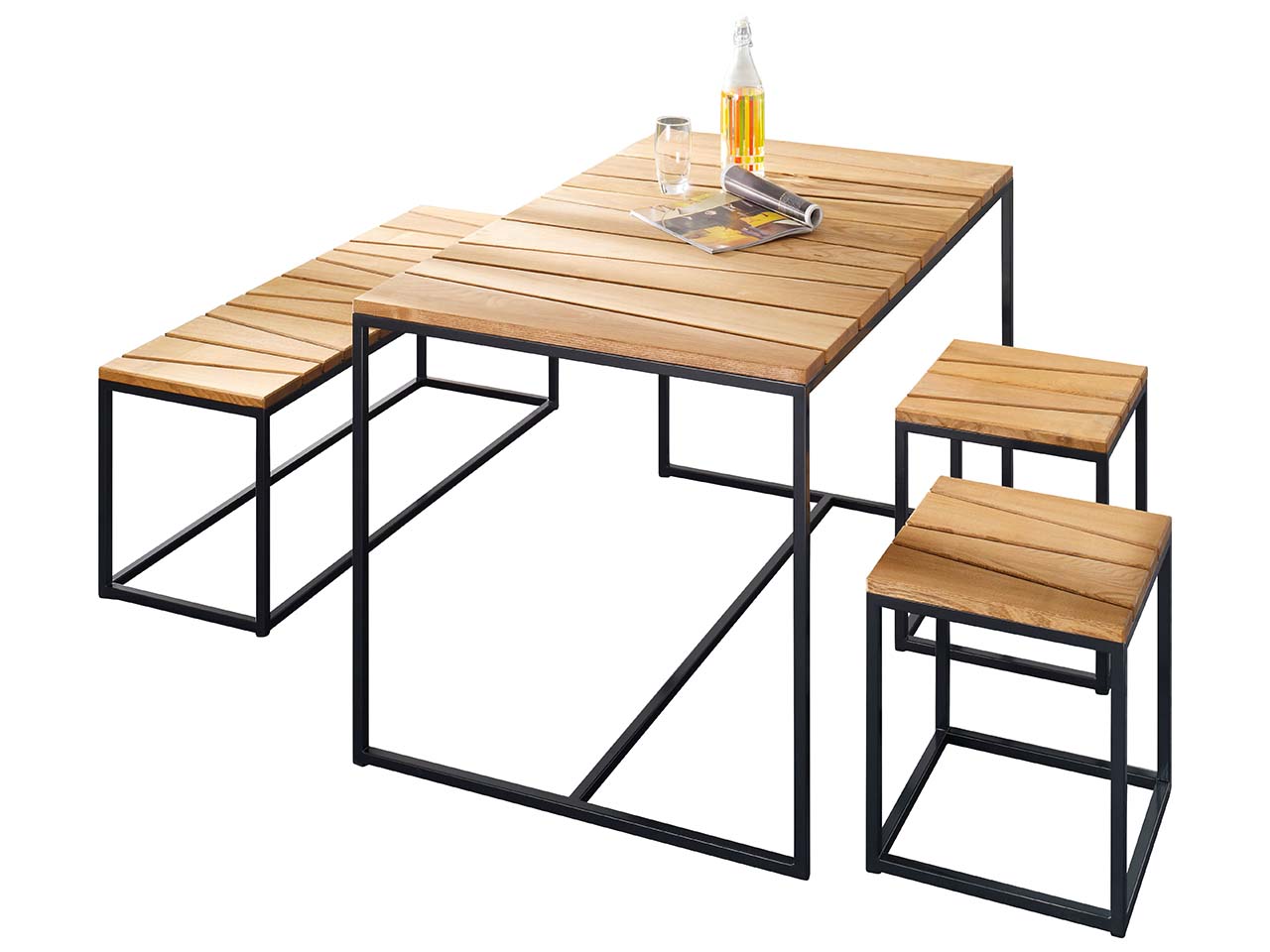 | Inhalt des Sets: | 2 Stühle, 1 Bank, 1 Tisch |