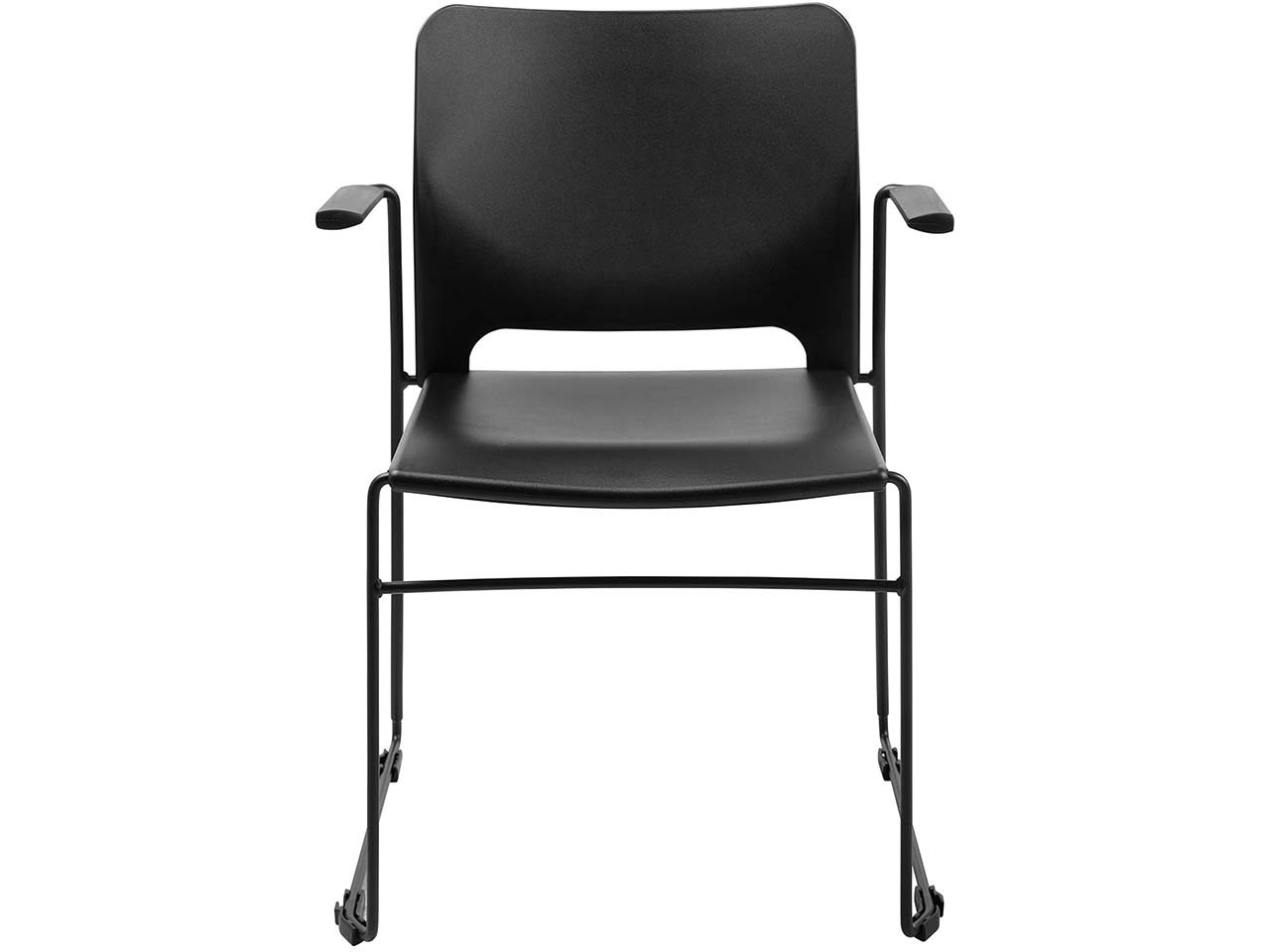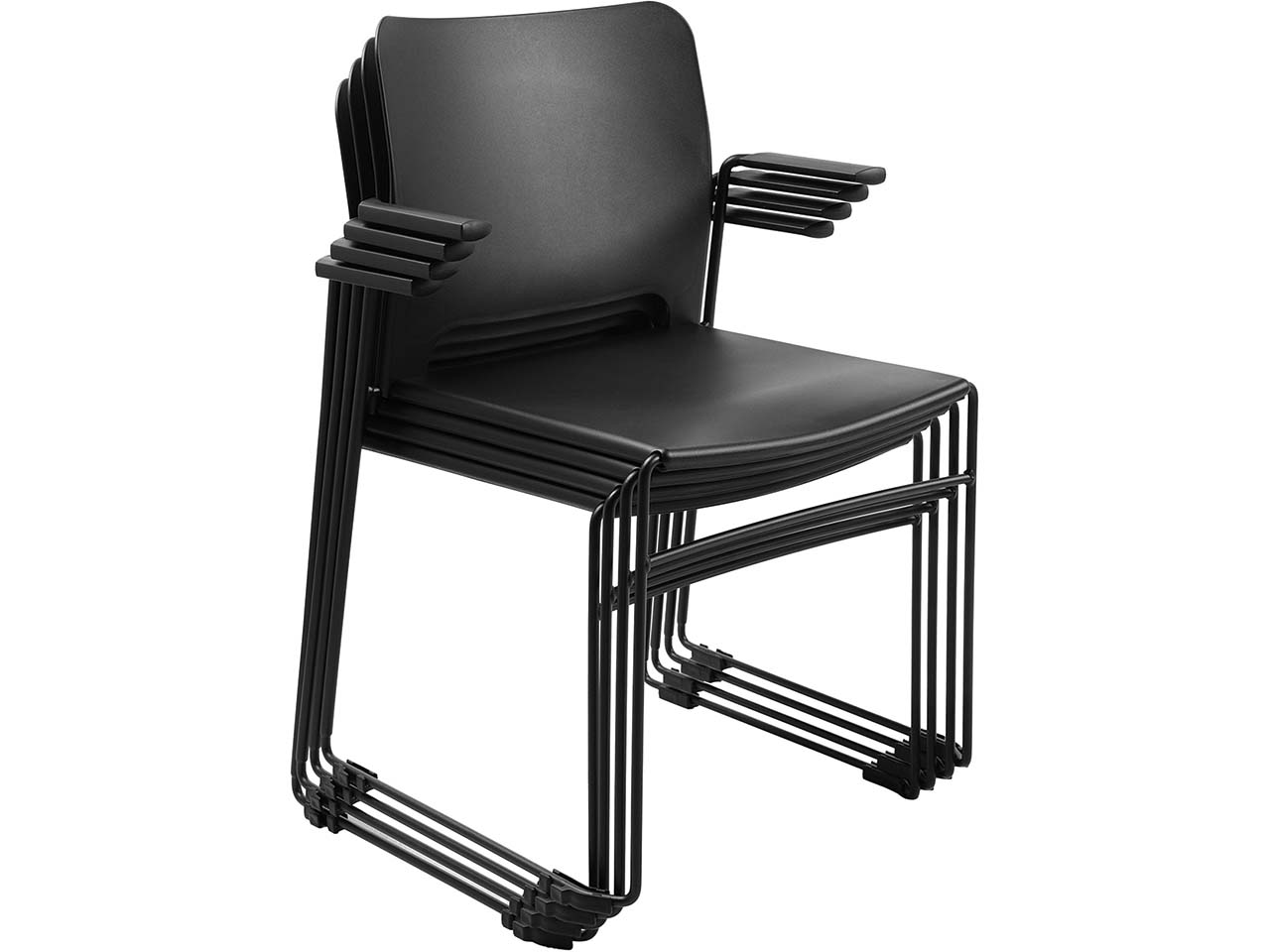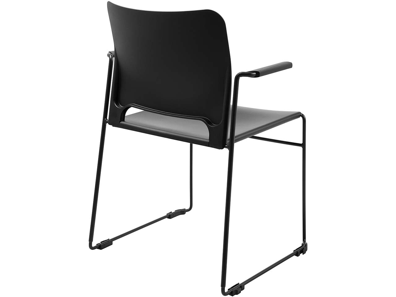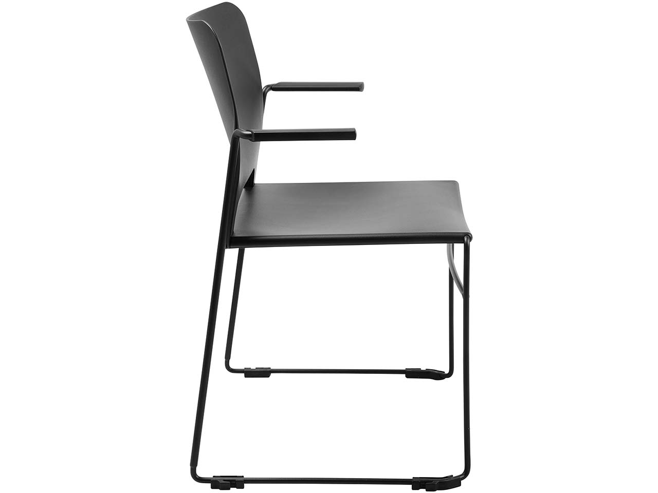 Die filigranen Streben und harmonischen Linien betonen die elegante Leichtigkeit des Besucherstuhls. Der stapelbare Stuhl mit Armlehnen überzeugt durch seine moderne Optik und das schlanke Profil – ideal für Empfangsbereiche, Konferenzräume oder Büros. Das filigrane Kufengestell ist ein optisches Highlight. Die Armlehnen sorgen für zusätzlichen Komfort.