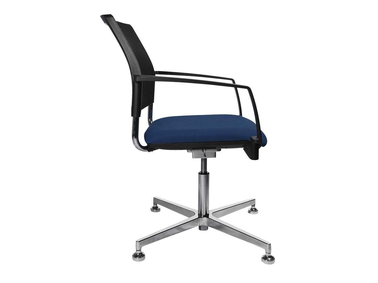 Der Besucherstuhl "3D-BtoB 30" verfügt über ein integriertes bewegliches Sitzgelenk, das ein dreidimensionales und dadurch gesundes Sitzen fördert. Der Muldensitz ist angenehm gepolstert und die ergonomisch geformte Rückenlehne für viel Atmungsaktivität mit einem Netzrücken bespannt. Mit Armlehnen und einem stabilen 4-Stern-Fußkreuz aus Aluminium. B 63 x T 63 x H 89-102 cm.