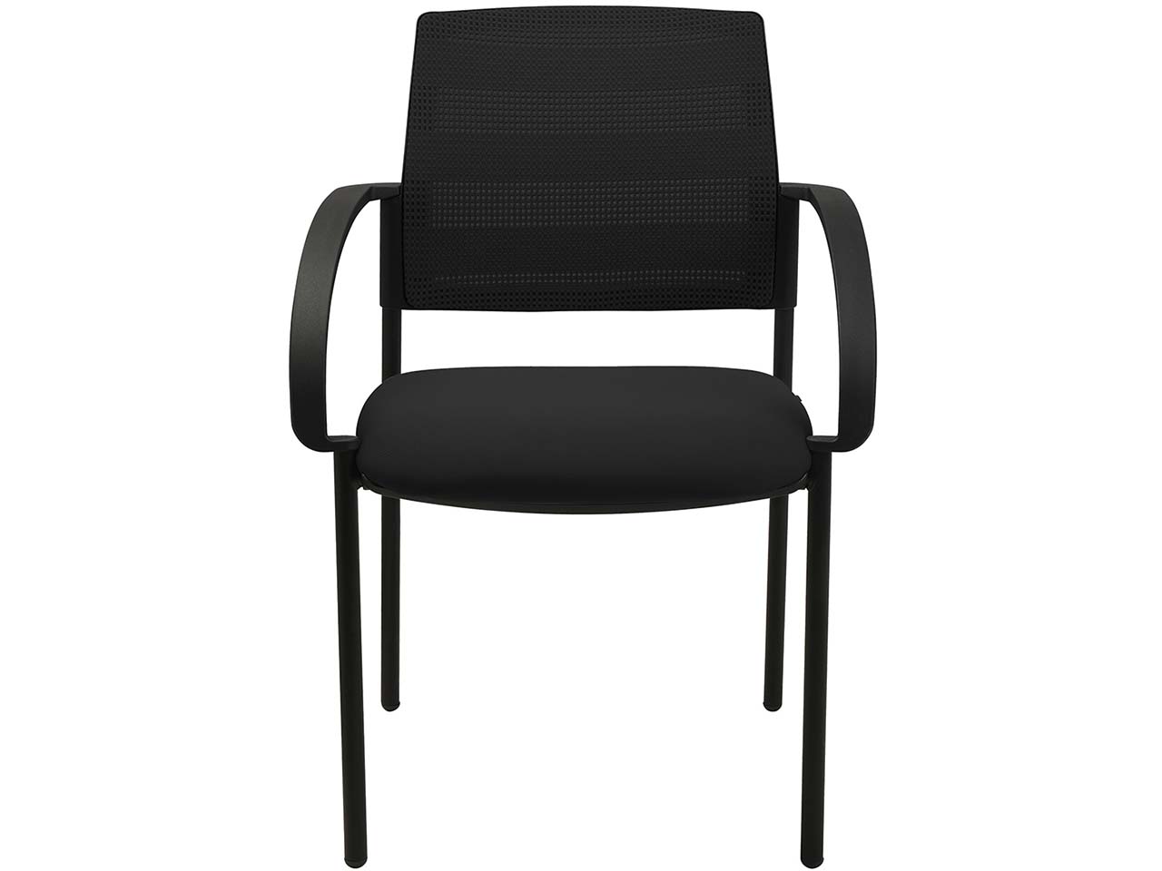 Dieser Besucherstuhl ist mit seinen klaren Formen und dem durchdachten Design eine perfekte Wahl für Büros, Empfangsbereiche und Besprechungsräume. Die ergonomisch geformte Rückenlehne mit atmungsaktiver Netzbespannung sowie der gepolsterte Muldensitz mit abgerundeter Vorderkante sorgen für exzellenten Sitzkomfort. Der stapelbare Besucherstuhl verfügt über Armlehnen und fügt sich harmonisch in bestehende Raumkonzepte ein.