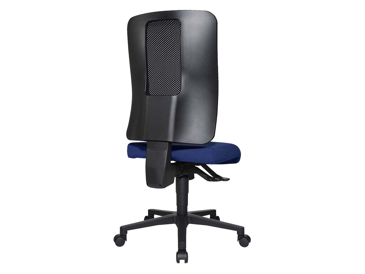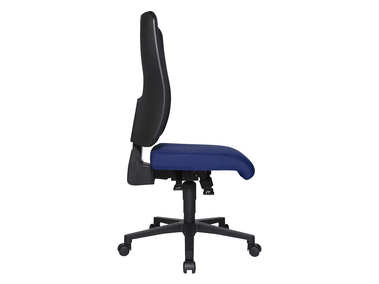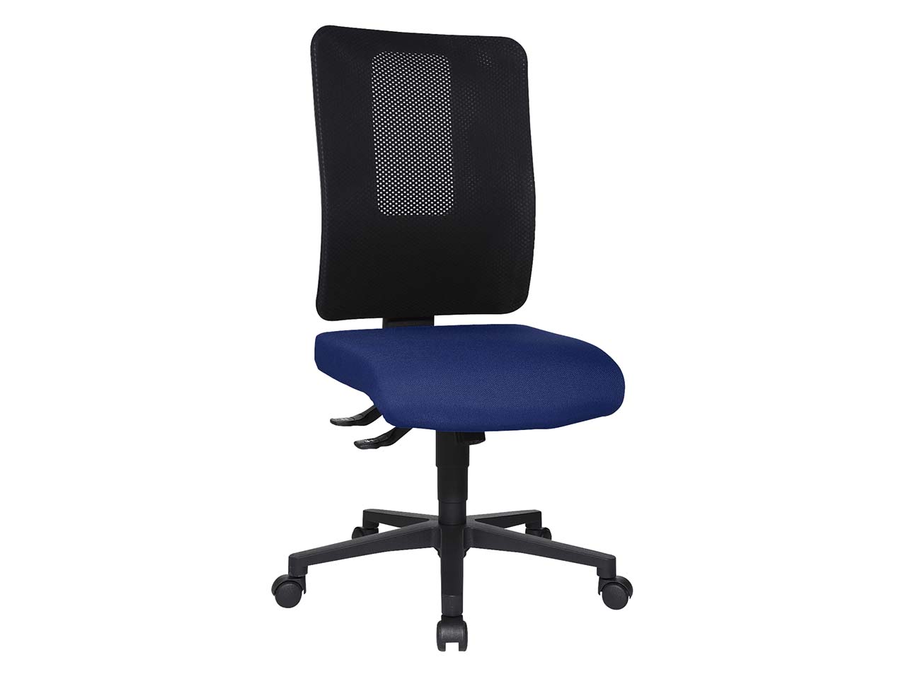 Der Topstar Bürodrehstuhl "Open X (N)" ohne Armlehnen sorgt dank neu konzipierter Rückenlehne mit atmungsaktiver Netzbespannung für ein angenehmes Wohlfühlklima am Rücken. Die Lehne ist in Höhe und Neigung verstellbar, sodass sie optimal an jede Körpergröße angepasst werden kann. Der Muldensitz mit Sitzvorderkante ermöglicht ein bequemes Sitzen. Durch die Synchronmechanik folgen Rückenlehnenneigung und Sitzneigung den Bewegungen des Sitzenden. Stufenlose Sitzhöhenverstellung mit Toplift.