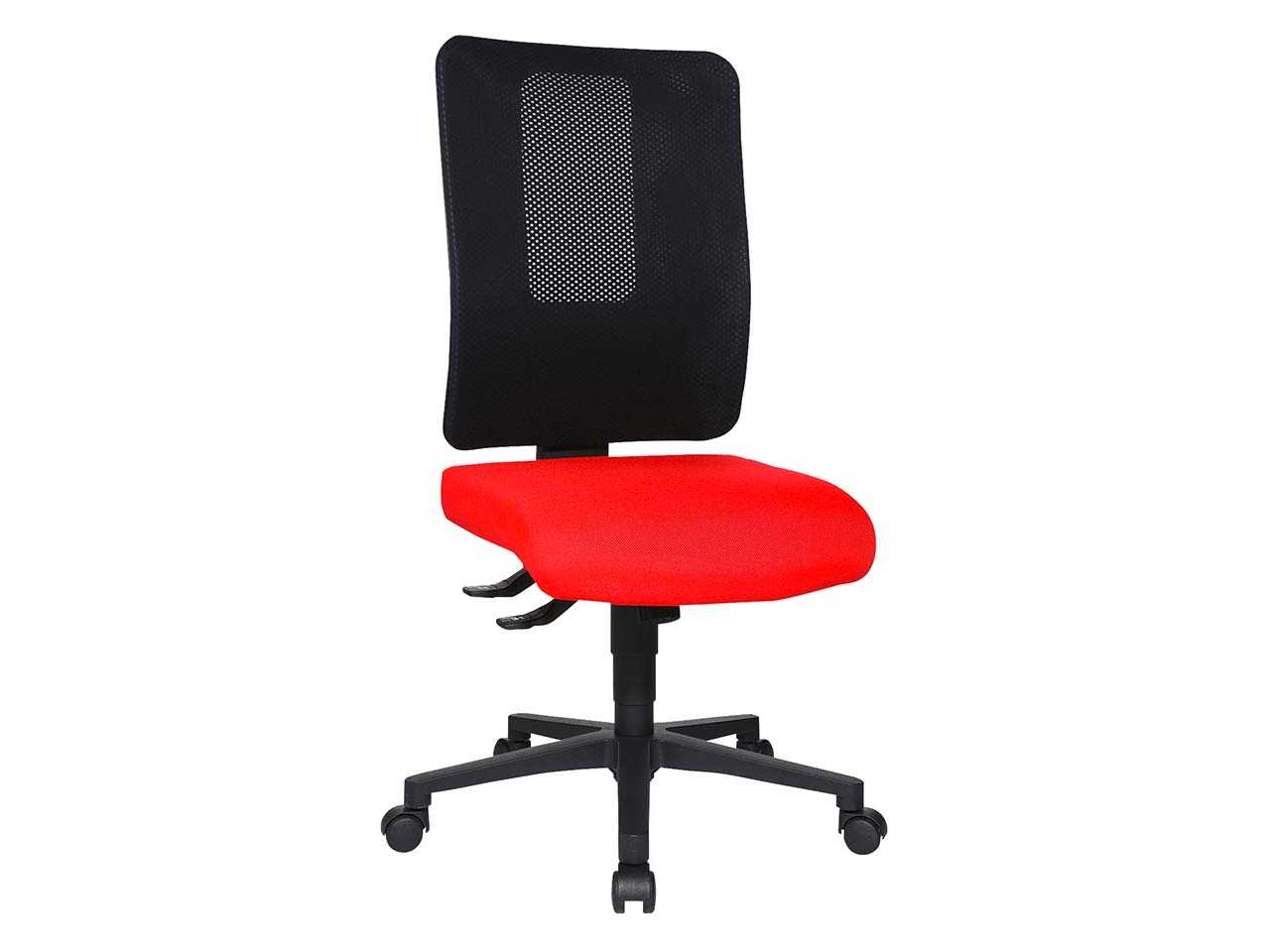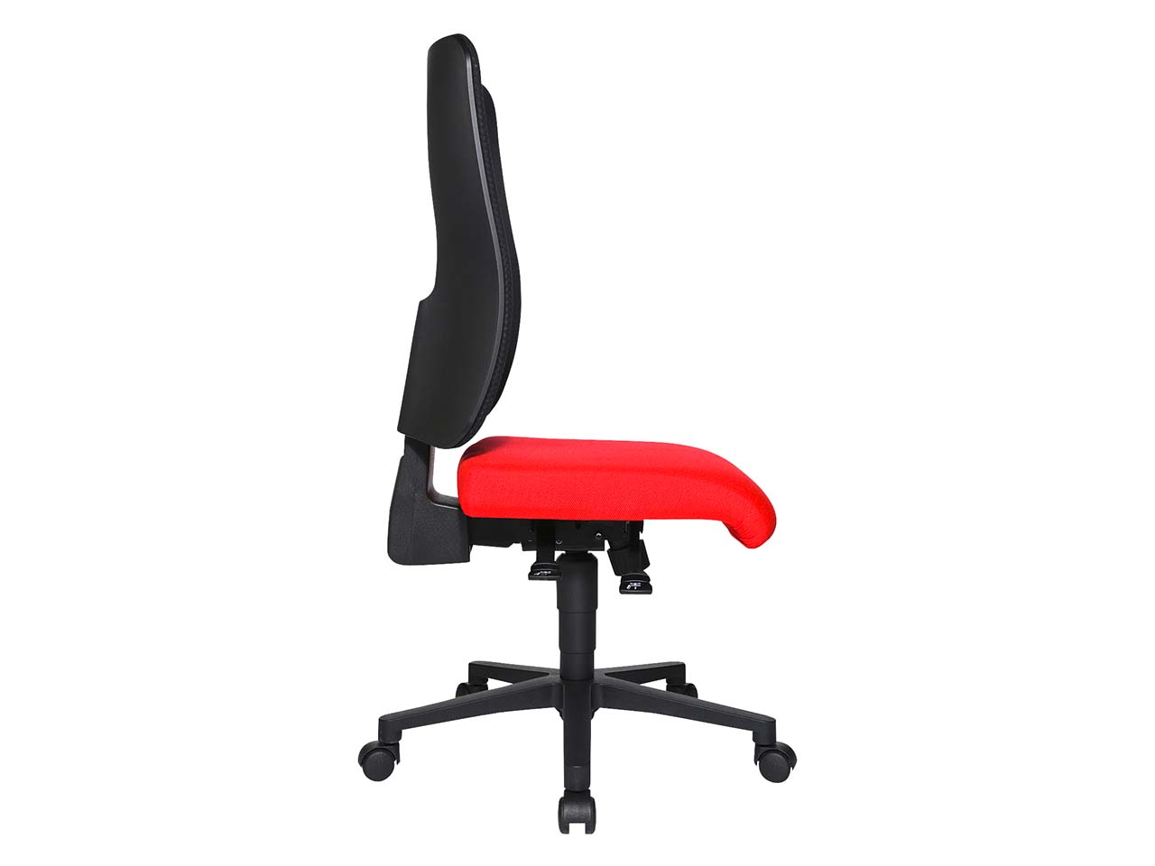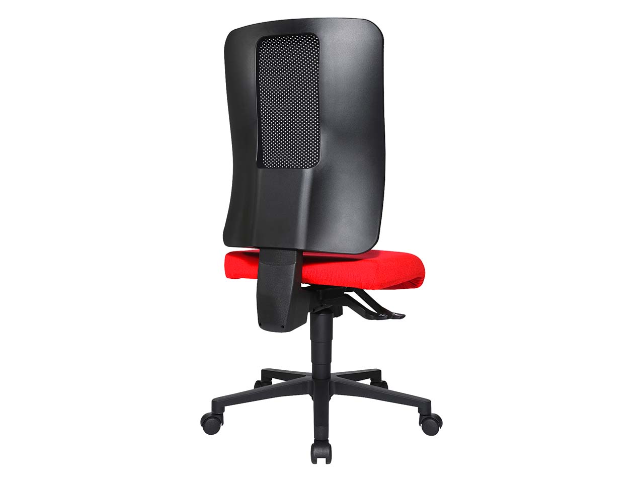 Der Topstar Bürodrehstuhl "Open X (N)" ohne Armlehnen sorgt dank neu konzipierter Rückenlehne mit atmungsaktiver Netzbespannung für ein angenehmes Wohlfühlklima am Rücken. Die Lehne ist in Höhe und Neigung verstellbar, sodass sie optimal an jede Körpergröße angepasst werden kann. Der Muldensitz mit Sitzvorderkante ermöglicht ein bequemes Sitzen. Durch die Synchronmechanik folgen Rückenlehnenneigung und Sitzneigung den Bewegungen des Sitzenden. Stufenlose Sitzhöhenverstellung mit Toplift.