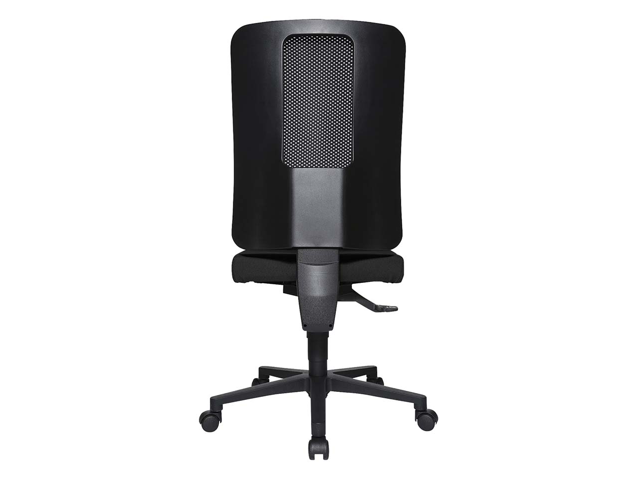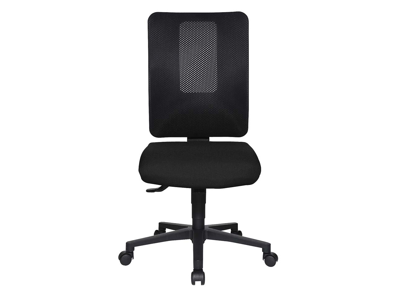 Der Topstar Bürodrehstuhl "Open X (N)" ohne Armlehnen sorgt dank neu konzipierter Rückenlehne mit atmungsaktiver Netzbespannung für ein angenehmes Wohlfühlklima am Rücken. Die Lehne ist in Höhe und Neigung verstellbar, sodass sie optimal an jede Körpergröße angepasst werden kann. Der Muldensitz mit Sitzvorderkante ermöglicht ein bequemes Sitzen. Durch die Synchronmechanik folgen Rückenlehnenneigung und Sitzneigung den Bewegungen des Sitzenden. Stufenlose Sitzhöhenverstellung mit Toplift.