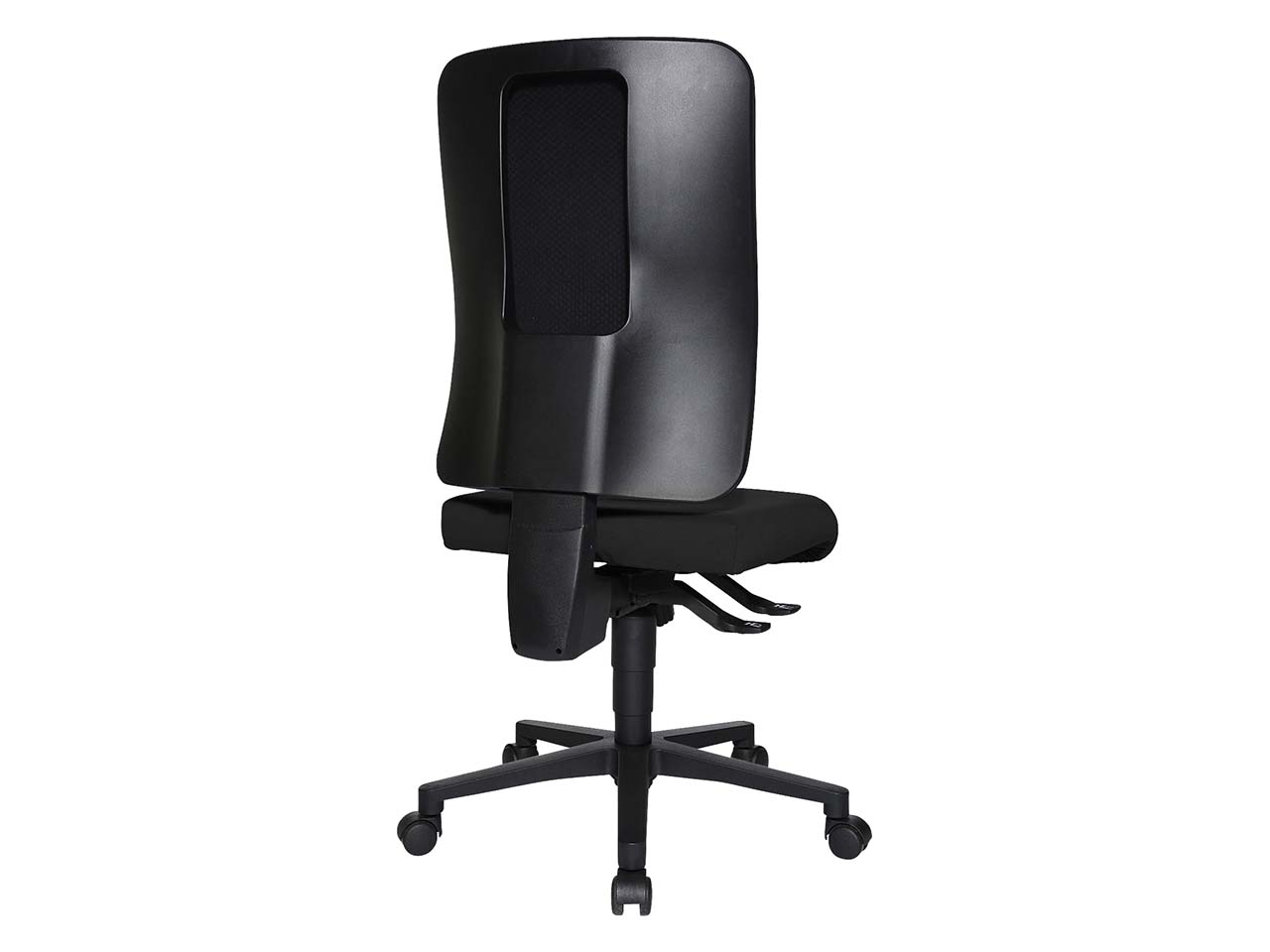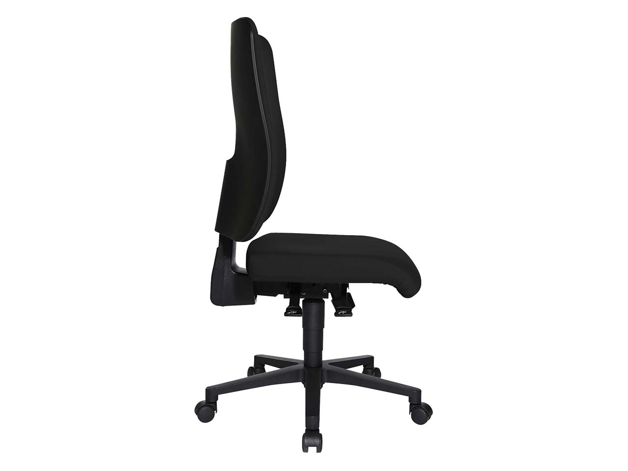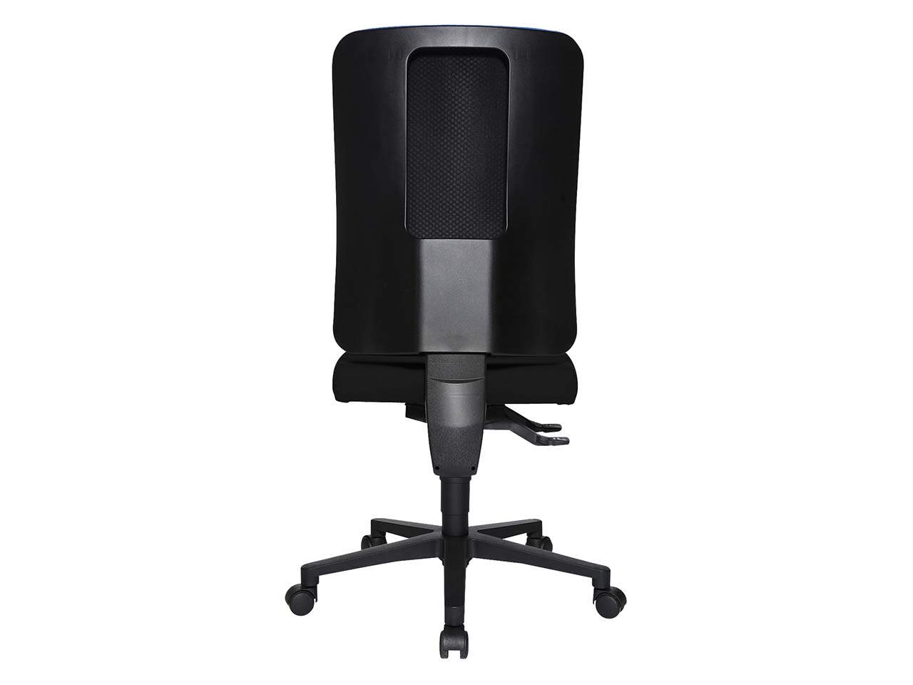 Der Topstar Bürodrehstuhl "Open X (P)" ohne Armlehnen verfügt über eine neu konzipierte Rückenlehne mit kaschiertem Polster, die für ein angenehmes Wohlfühlklima am Rücken sorgt. Die Lehne ist in Höhe und Neigung verstellbar, sodass sie optimal an jede Körpergröße angepasst werden kann. Der Muldensitz mit Sitzvorderkante ermöglicht ein bequemes Sitzen. Durch die Synchronmechanik folgen Rückenlehnenneigung und Sitzneigung den Bewegungen des Sitzenden. Stufenlose Sitzhöhenverstellung mit Toplift.