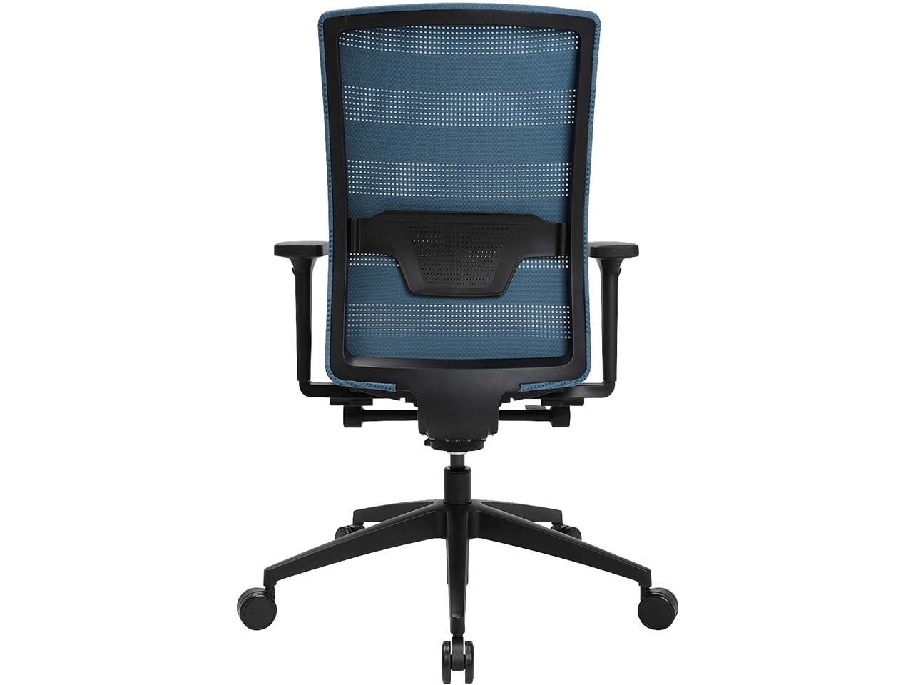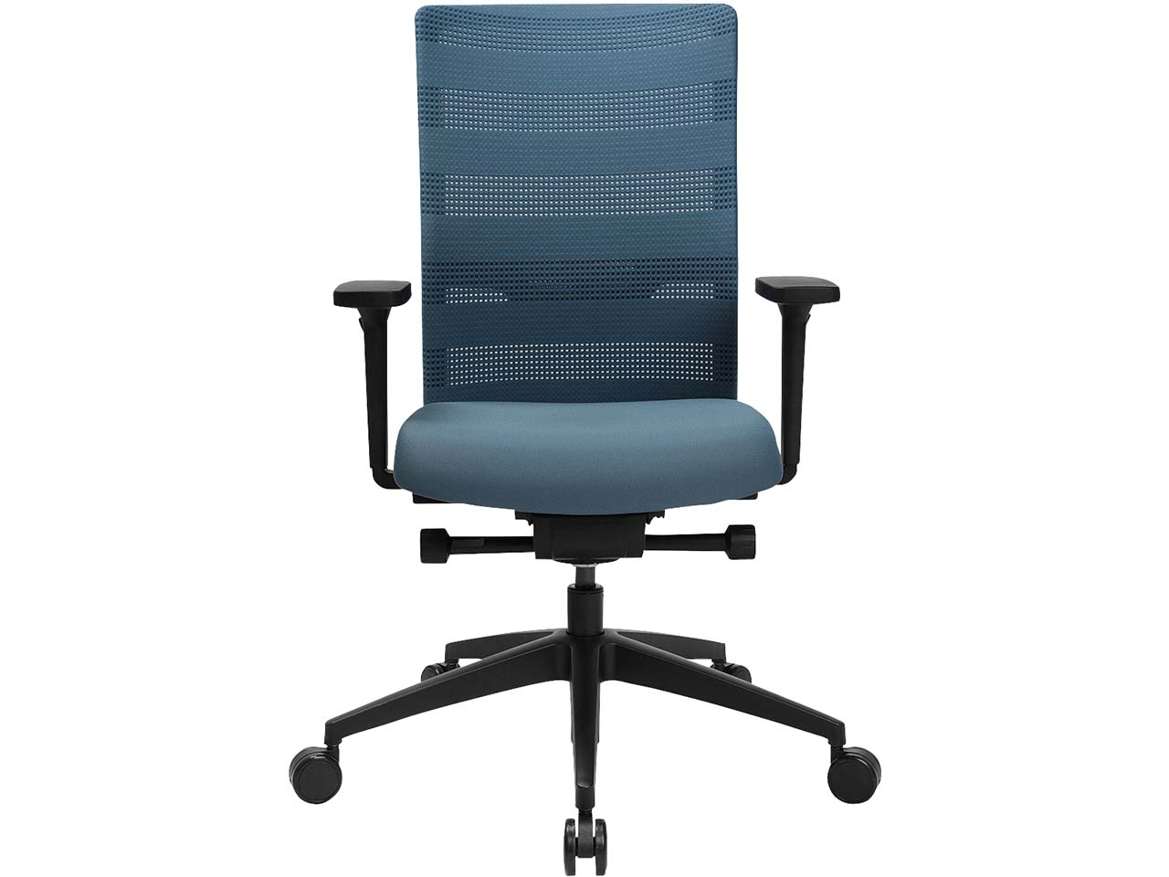 Besser sitzen, fokussierter arbeiten: Der Bürodrehstuhl von Topstar punktet neben seiner unverwechselbaren, farblich abgestimmten Optik vor allem mit seiner integrierten Sitness 3D Bewegungs-Technologie. Bei dieser sind Stuhlgestell und Sitzfläche dynamisch miteinander verbunden, sodass die Rückenmuskulatur permanent aktiviert und aufgebaut wird. Rücken und Wirbelsäule werden trainiert und die Bandscheiben entlastet. Die Konzentrationsfähigkeit verbessert sich durch das besondere Sitzen. Der Bürostuhl ist mit einer stufenlosen Sitzhöhenverstellung ausgestattet und Sitz- und Rückenlehnenneigung sind synchron verstellbar. Ein Highlight ist die hochwertige Rückenlehne mit atmungsaktiver Netzbespannung, die in der Höhe verstellbar ist. Die Federkrafteinstellung passt sich automatisch dem Körpergewicht an. Zusätzlicher Sitzkomfort entsteht durch das höhenverstellbare Lumbalpad sowie die ergonomisch geformten, höhenverstellbaren Armlehnen.