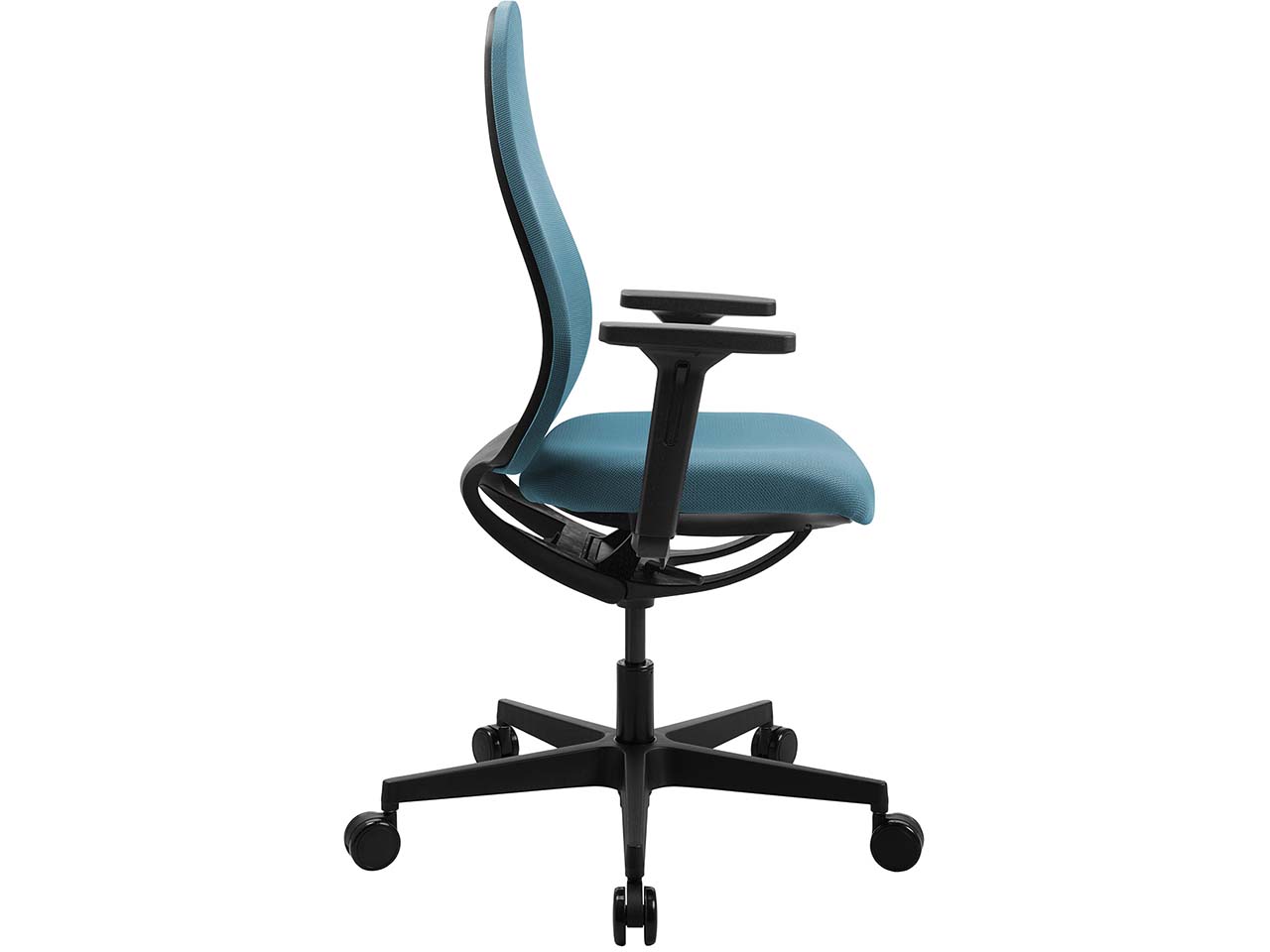 Rund 10 Stunden am Tag verbringen Menschen sitzend. Da ist ein guter Stuhl entscheidend, damit keine starren Haltungen und Rückenschmerzen entstehen. Der Bürostuhl von Topstar ist mit der innovativen Soft Sitness-Technologie ausgestattet. Diese entsteht allein durch die Flexibilität des Materials. Allein zwei federnde Spangen unter der Sitzfläche sorgen für die weich schwingende Bewegung beim Sitzen, die durch das eigene Körpergewicht nach vorne, hinten oder seitwärts gelenkt wird. Durch die Bewegungsfreiheit der Soft-Sitness-Technologie entsteht ein aktiveres Sitzen, das die Rückenmuskulatur ganz automatisch trainiert und so Schmerzen vorbeugt. Weitere Vorteile sind, dass die Bandscheiben entlasten werden, viel Bewegungsfreiheit gegeben ist, der Blutkreislauf aktiviert und die Konzentrationsfähigkeit verbessert wird. Neben der selbstregulierenden Synchron-Mechanik aus Glasfaser-verstärktem Kunststoff punktet der Bürodrehstuhl auch mit einer Netzrückenlehne, die keine sichtbaren Schrauben hat. Die Lendenwirbelstütze ist ebenso wie die Armlehnen in der Höhe verstellbar. Das macht den Bürostuhl ideal für die Arbeit am Schreibtisch.