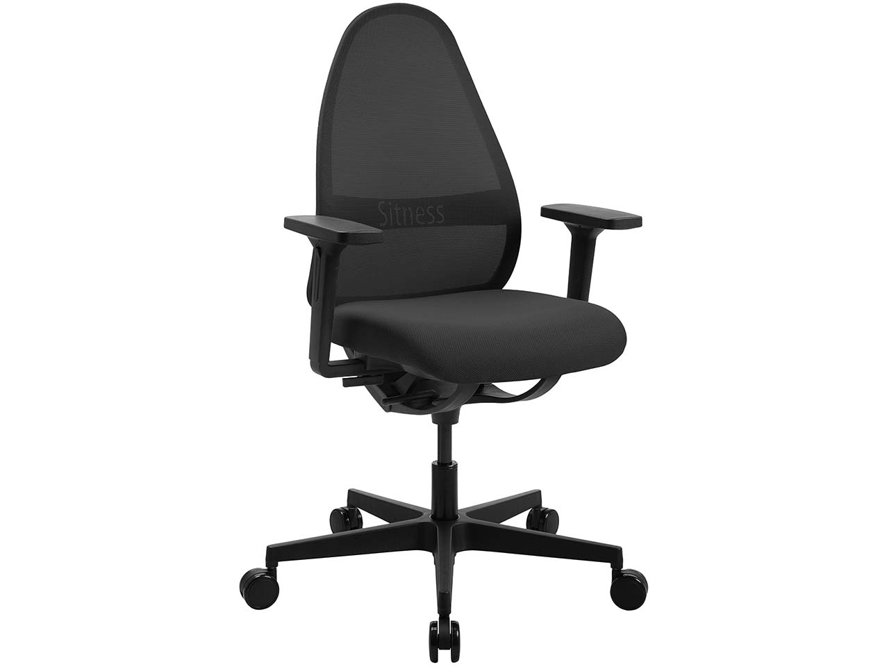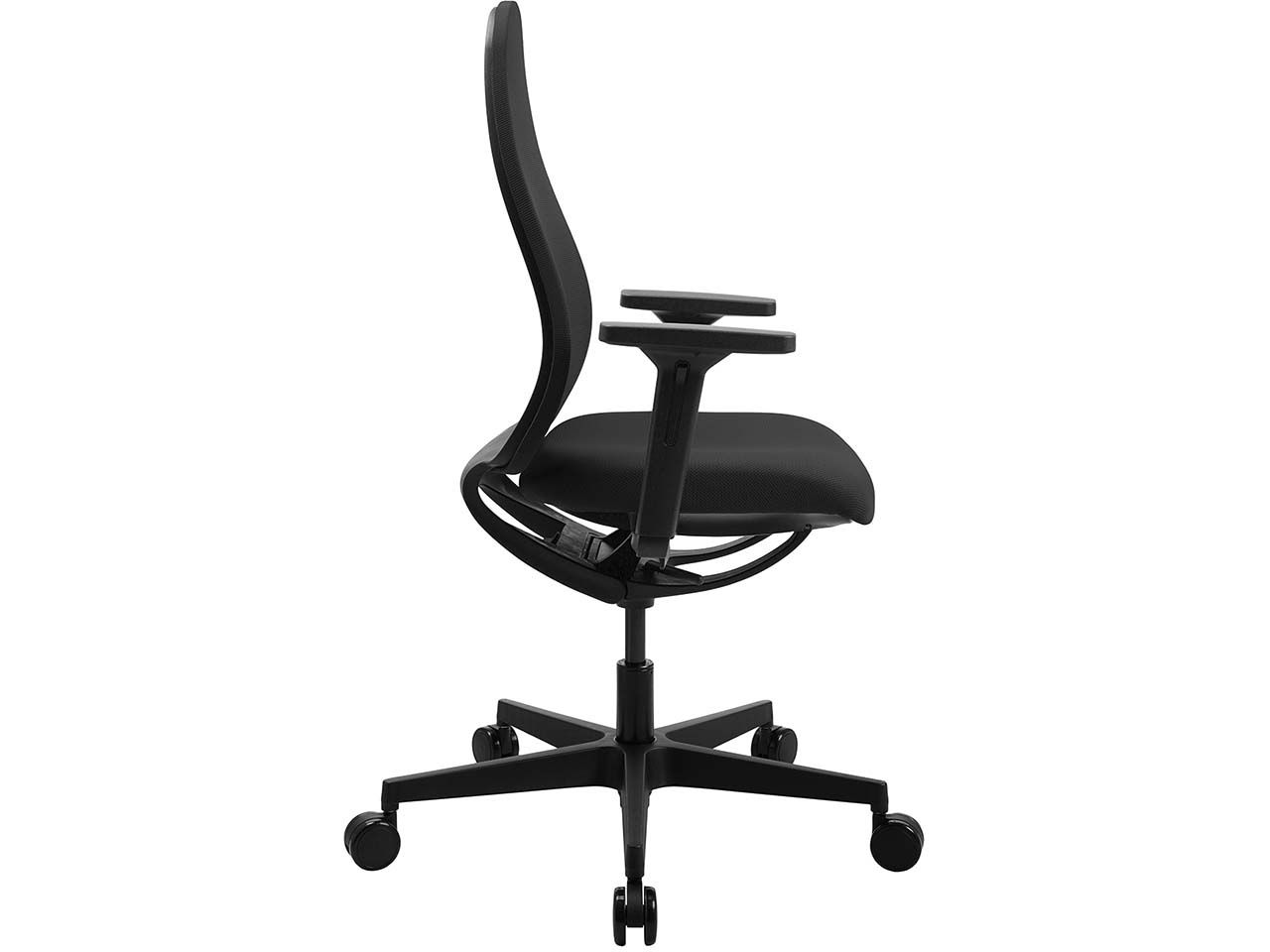 Rund 10 Stunden am Tag verbringen Menschen sitzend. Da ist ein guter Stuhl entscheidend, damit keine starren Haltungen und Rückenschmerzen entstehen. Der Bürostuhl von Topstar ist mit der innovativen Soft Sitness-Technologie ausgestattet. Diese entsteht allein durch die Flexibilität des Materials. Allein zwei federnde Spangen unter der Sitzfläche sorgen für die weich schwingende Bewegung beim Sitzen, die durch das eigene Körpergewicht nach vorne, hinten oder seitwärts gelenkt wird. Durch die Bewegungsfreiheit der Soft-Sitness-Technologie entsteht ein aktiveres Sitzen, das die Rückenmuskulatur ganz automatisch trainiert und so Schmerzen vorbeugt. Weitere Vorteile sind, dass die Bandscheiben entlasten werden, viel Bewegungsfreiheit gegeben ist, der Blutkreislauf aktiviert und die Konzentrationsfähigkeit verbessert wird. Neben der selbstregulierenden Synchron-Mechanik aus Glasfaser-verstärktem Kunststoff punktet der Bürodrehstuhl auch mit einer Netzrückenlehne, die keine sichtbaren Schrauben hat. Die Lendenwirbelstütze ist ebenso wie die Armlehnen in der Höhe verstellbar. Das macht den Bürostuhl ideal für die Arbeit am Schreibtisch.