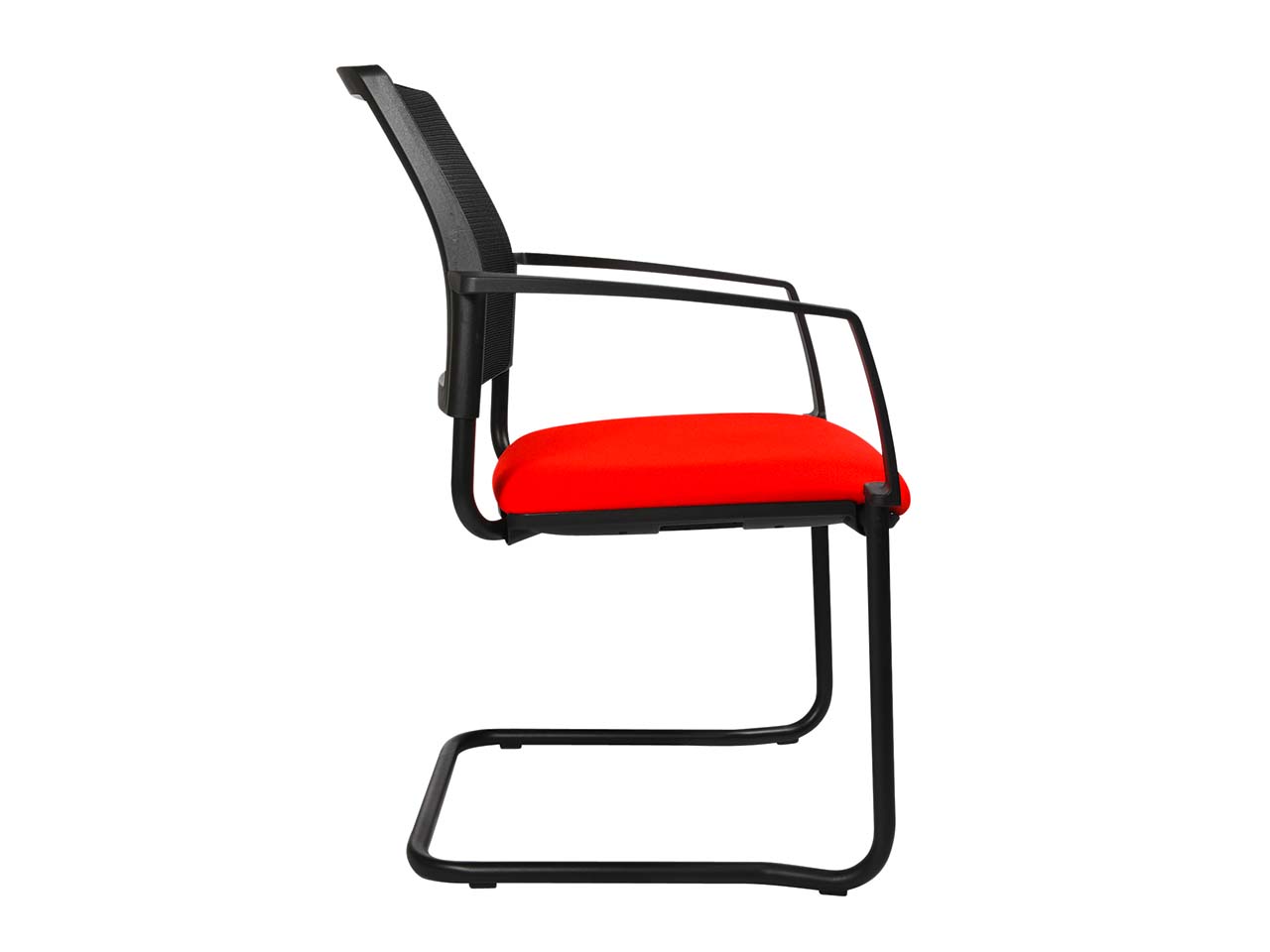 Modern designter Konferenz- und Besucherstuhl mit klassischem Schwingergestell. Der 5- bis 6-fach stapelbare Freischwinger aus stabilem, pulverbeschichtetem Stahlrohr verfügt über einen bequem gepolsterten Muldensitz und eine atmungsaktive, ergonomische Rückenlehne. Scheuerbeständiger Bezug mit OEKO-Tex Standard 100. Inklusive Armlehnen. B 63 x T 63 x H 94 cm. 1 Set = 2 Stk.