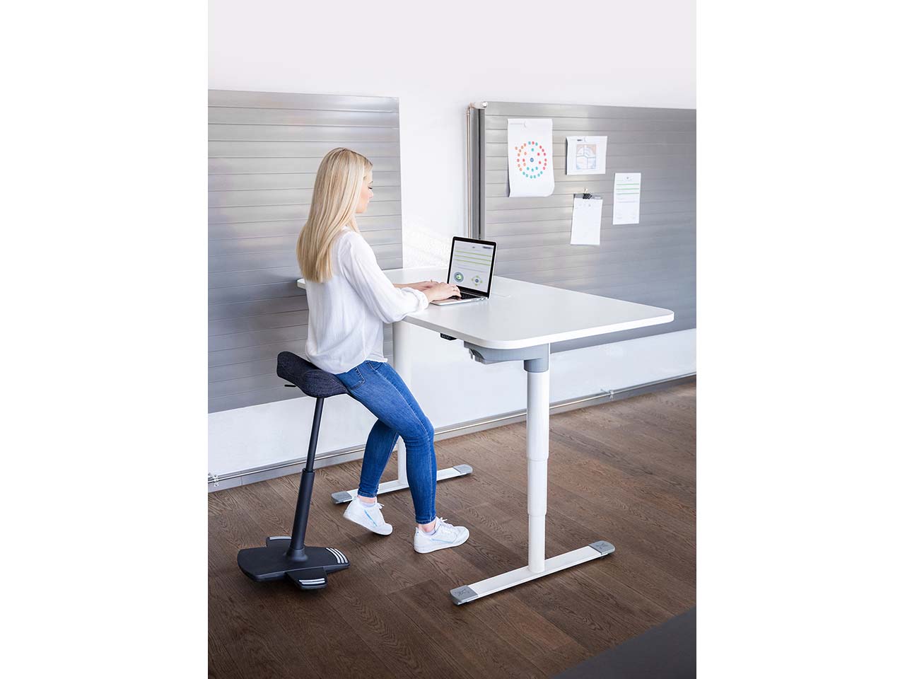 - Fördert ein bewegliches, aktiv dynamisches Sitzen bzw. Stehen
