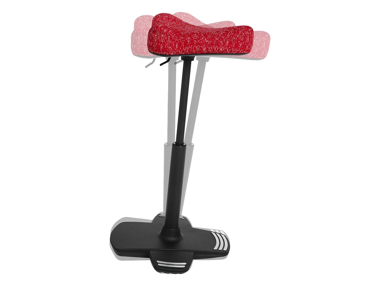 Die Stehhilfe "Sitness Work High Falcon" ist die perfekte Lösung für erhöhte Arbeitsplätze wie z.B. höhenverstellbare Schreibtische und eignet sich für den Einsatz im Büro, in der Werkstatt, in der Küche oder im Haushalt. Die Stehhilfe trainiert durch das bewegliche, aktiv dynamische Stehen bzw. Sitzen den Rücken und wirkt präventiv gegen Rückenprobleme. Durch den ergonomisch geformten Sattelsitz entsteht eine komfortable Sitz- oder Stehposition. Der patentierte Standfuss mit Kippkante sorgt für eine aufrechte bzw. bei Bedarf auch vorn geneigte Position. Die Stehhilfe beugt sich nicht nur nach vorn/hinten sondern auch zur Seite links/rechts. Die schwarz lackierte Gasfeder hat einen „Clean-Effekt“, die sich durch einen Abstreifmechanismus selbst reinigt und so ölfrei ist.