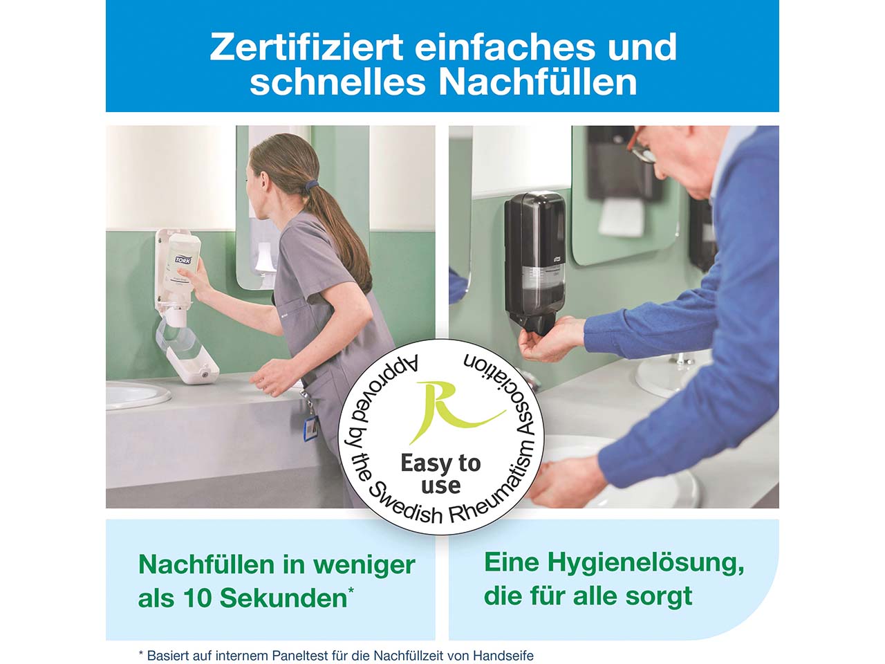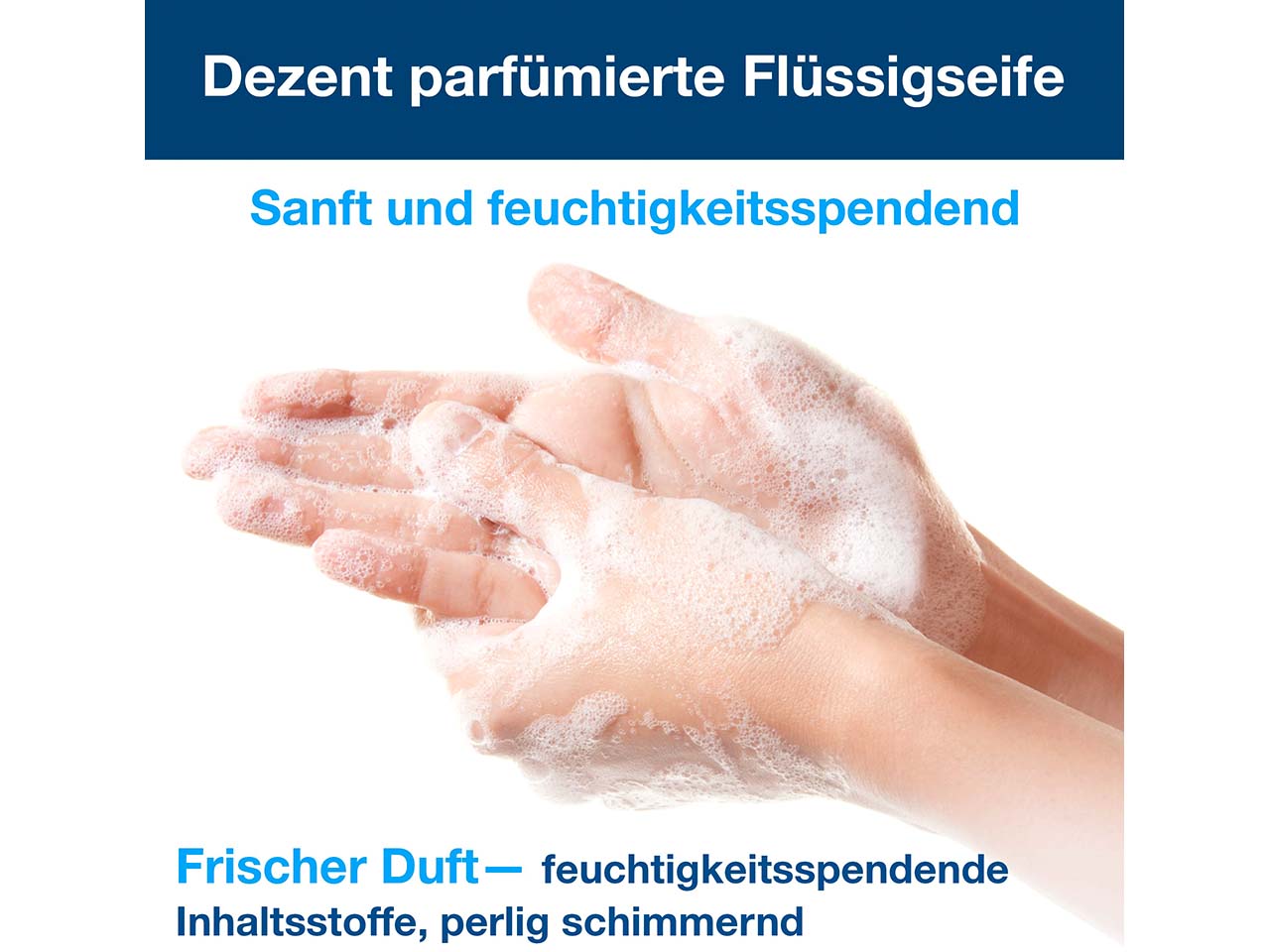 Diese dezent duftende Flüssigseife im hygienisch versiegelten Flakon ist speziell für die Verwendung mit Tork Spendern entwickelt. Die nach EU Ecolabel zertifizierte Seife ist mit ihren rückfettenden Inhaltsstoffen feuchtigkeitsspendend und ideal für die Pflege von normaler und trockener Haut.