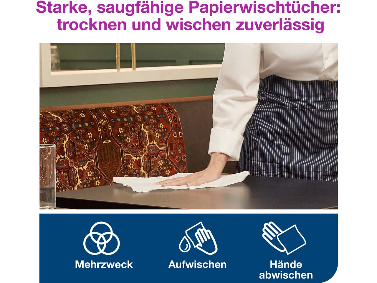 - Starke, 2-lagige Mehrzweck-Papierwischtücher aus Recyclingfasern