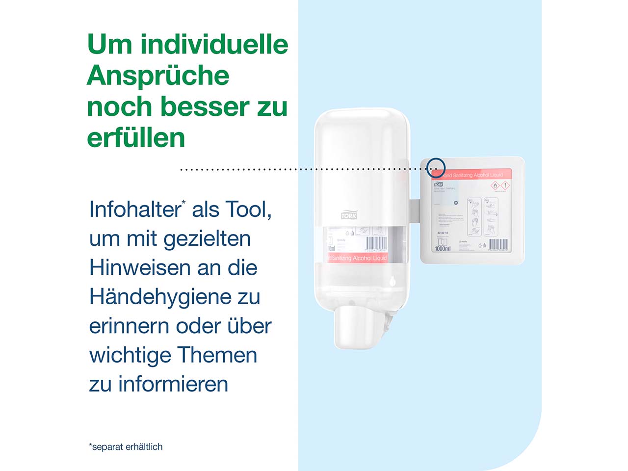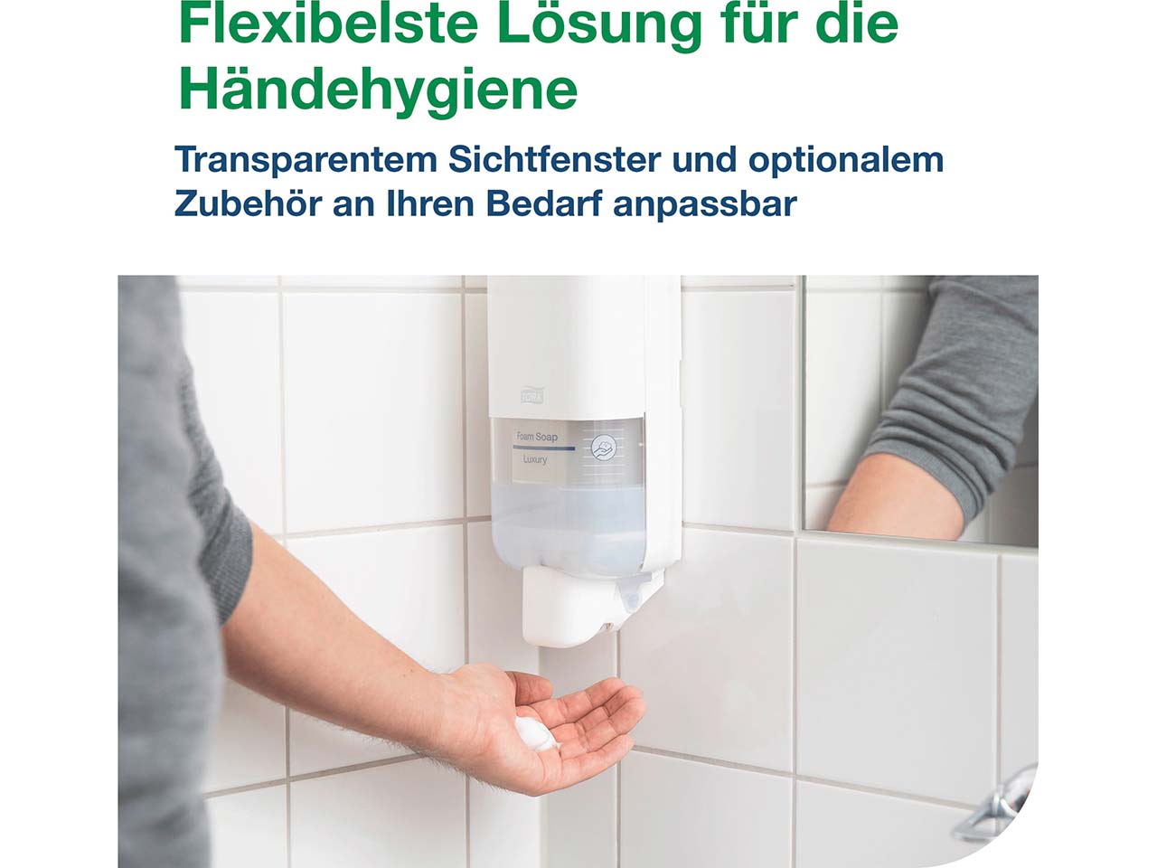 Der Tork Spender für Seife und Händedesinfektionsmittel überzeugt durch Funktionalität, Langlebigkeit und modernes Design. Er ist für hygienekritische Bereiche entwickelt und lässt er sich mit verschiedenen Seifen, Lotionen und Desinfektionsmitteln verwenden. Die variable Dosiermenge ermöglicht einen sparsamen Verbrauch und unterstützt eine zuverlässige Händehygiene. Ein Sichtfenster erleichtert die Füllstandskontrolle und das Nachfüllen erfolgt in unter 10 Sekunden. Der werksversiegelte Flakon mit Einwegpumpe minimiert das Risiko von Kreuzkontaminationen.