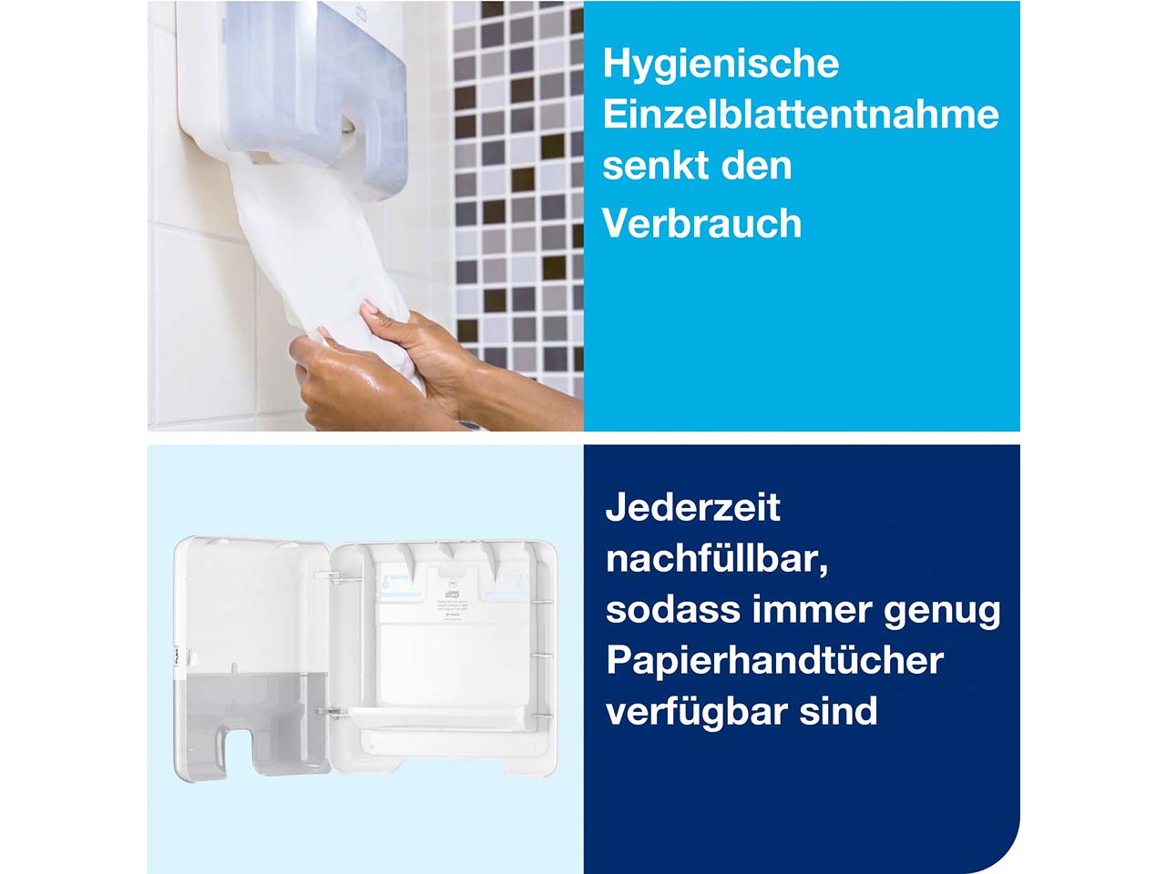 - Schlanker, platzsparender Handtuchspender mit Einzelblattentnahme