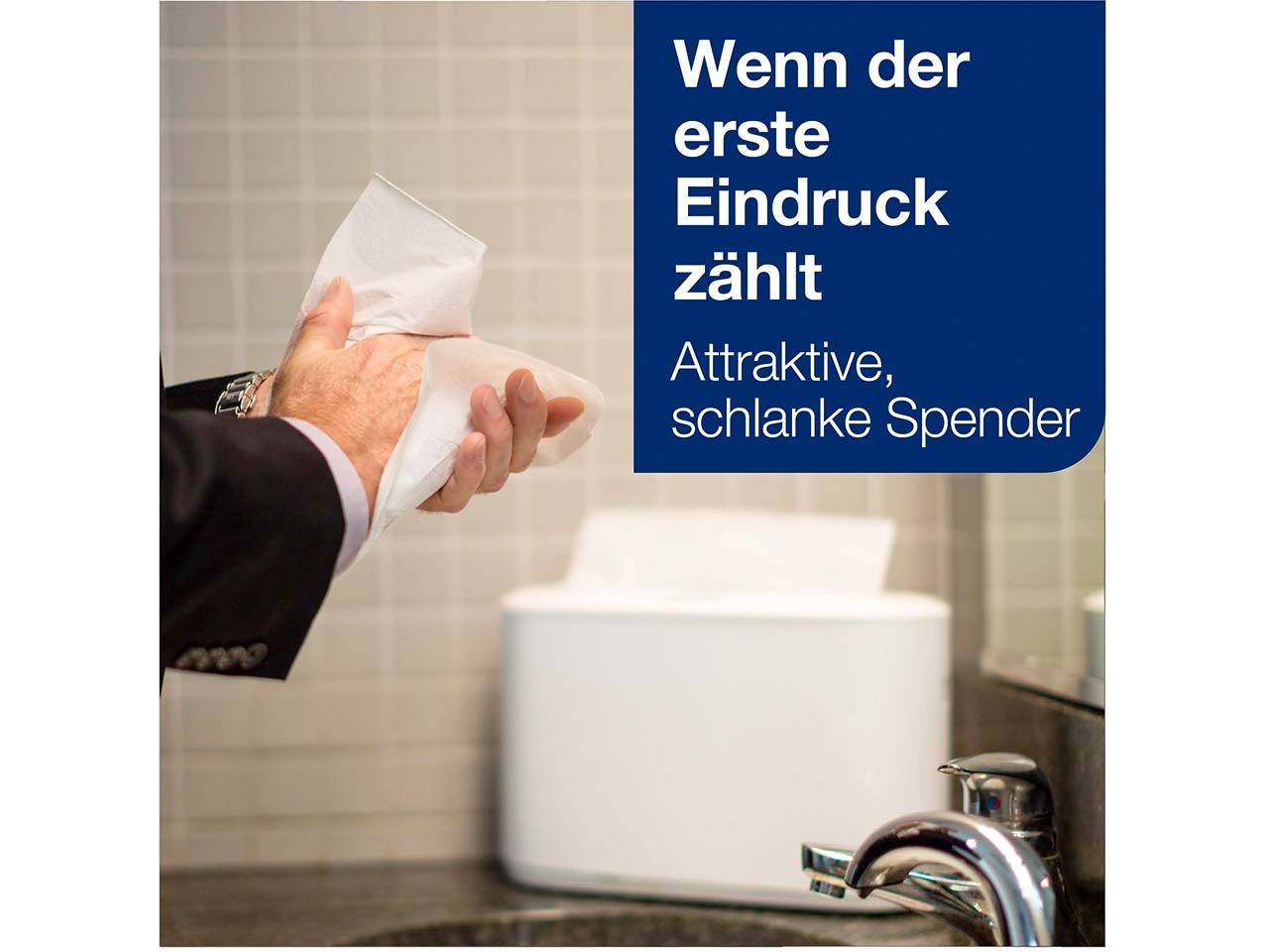 - Hochwertiger, kompakter Tischspender mit Einzeltuchentnahme