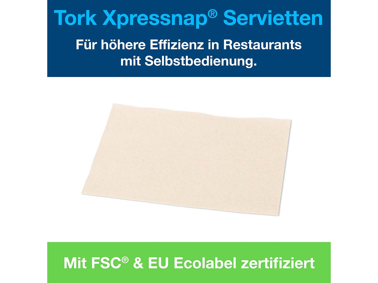 Diese Premium-Servietten aus Recyclingfaser sind eine hervorragende Wahl für Selbstbedienungsrestaurants. Die nach FSC und EU Ecolabel zertifizierten, 2-lagigen Servietten sind speziell für Tork Spender entwickelt. Mit ihrer extra weichen Qualität erhöhen sie den Komfort bei der Nutzung. Im entfalteten Zustand sind die Servietten mit 1/2-Falzung besonders groß.