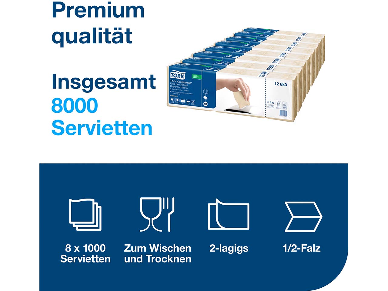 Tork Xpressnap Extra Softe-Servietten "Premium N4" 1/2-Falzung, 8 x 1000 Blatt