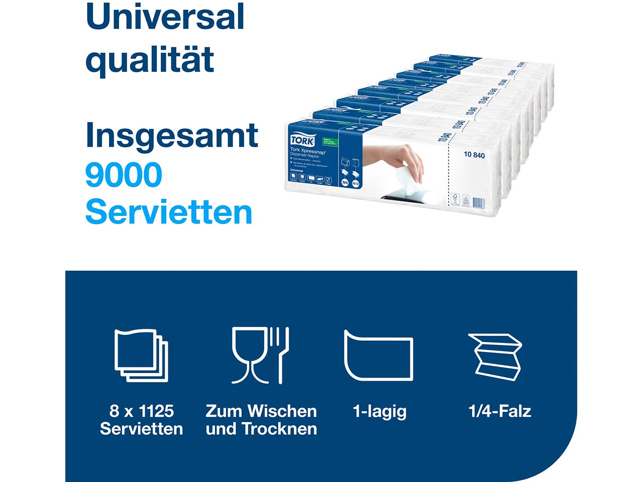 Tork Xpressnap Servietten "Universal N4" 1-lagig, 1/4-Falzung, 8 x 1125 Blatt