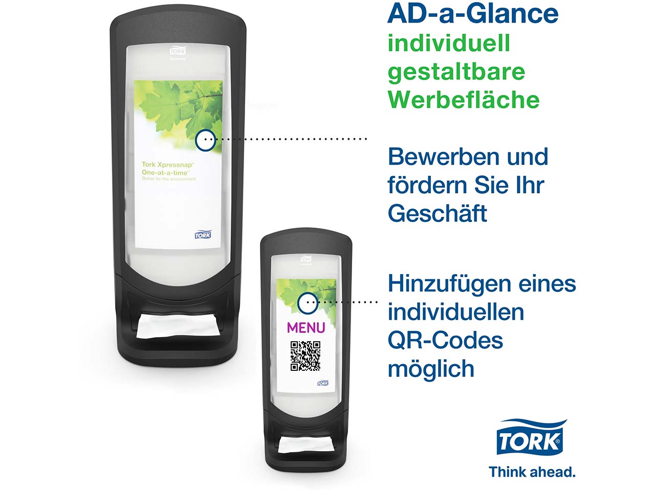 Aufrecht designter Serviettenspender mit individuell bestückbarer Werbefläche