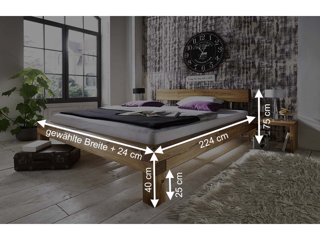 - Massivholzbett aus geölter Wildeiche