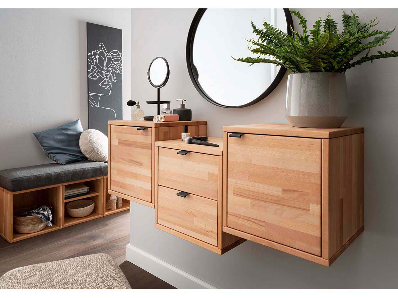 Ein Hängeregal mit unzähligen Möglichkeiten! Dieser Allrounder sieht in Flur, Küche, Bad, Wohn-, Schlaf- oder Kinderzimmer toll aus. Das Beste: Das Regal kann nach eigenen Vorstellungen gestaltet und umfunktioniert werden – und das immer wieder aufs Neue. Separat erhältliches Zubehör und Bauteile wie eine Tür oder ein Einlegeboden macht das Hängeregal einzigartig. Es kann so jederzeit auf die individuellen Bedürfnisse abgestimmt werden. Die Teile lassen sich miteinander kombinieren oder einzeln nutzen. Wird z.B. eine Unterteilung benötigt, wird einfach ein Einlegeboden eingesetzt. Ganz einfach und flexibel. Dabei ist das Regal aus massiver, geölter Kernbuche auch sehr stabil und langlebig. Die natürliche, unregelmäßige Maserung sorgt zusätzlich für eine ansprechende Optik. Das Hängeregal ist ideal für die Anbringung an der Wand, kann aber auch für DIY-Zwecke oder als kleine Ablagemöglichkeit auf dem Boden genutzt werden. B 38 x T 20 x H 38 cm.