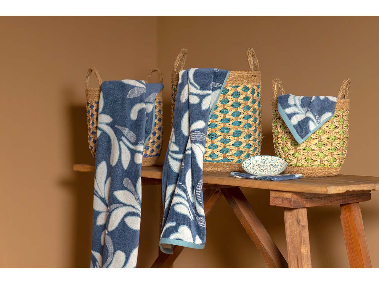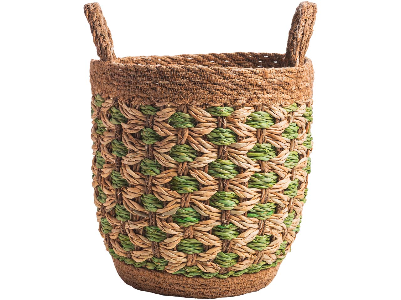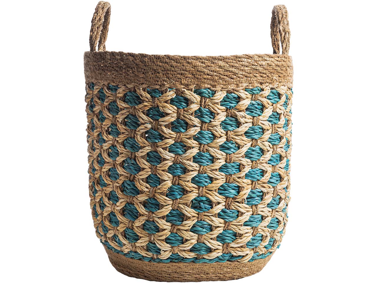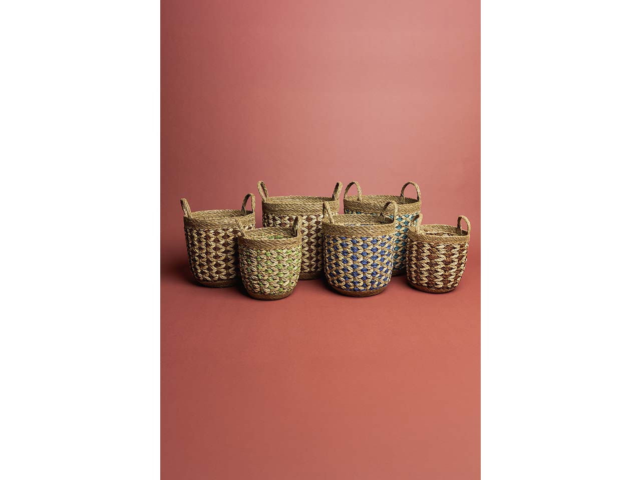 - Handgefertigte Körbe aus Seegras und Jutematerial