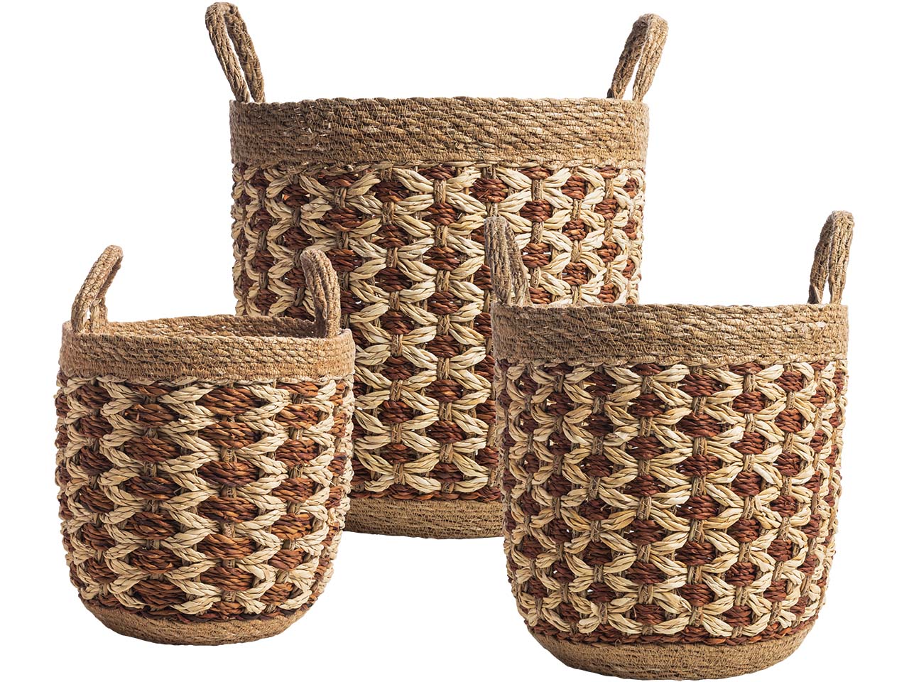 - Handgefertigte Körbe aus Seegras und Jutematerial