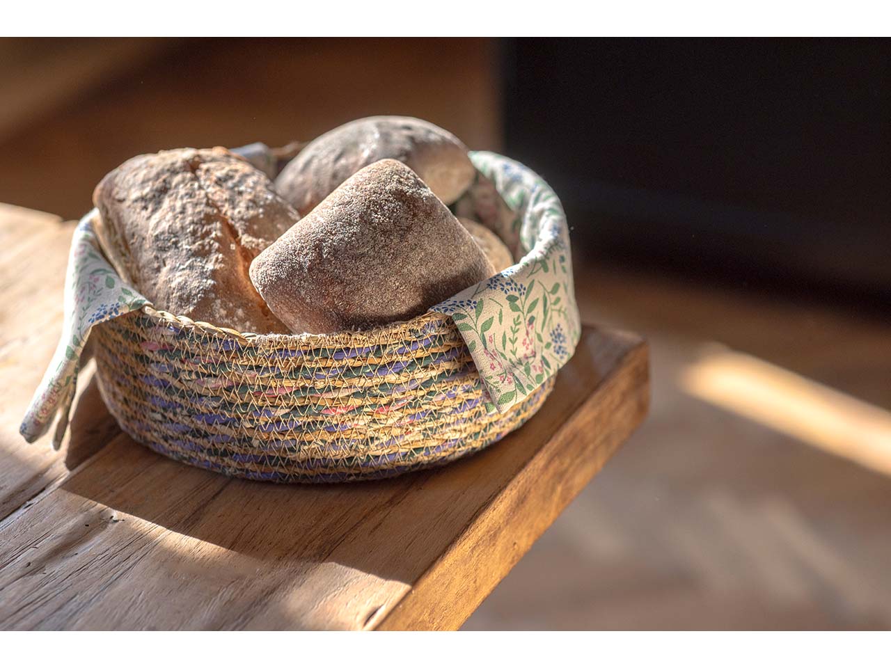 | Material: | 50% recycelter Stoff (90% Baumwolle, 10% andere), 50% Seegras |