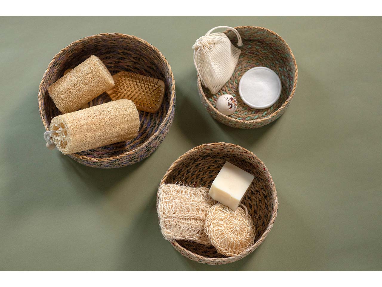 - Handgefertigte Körbe aus Seegras und Jutematerial