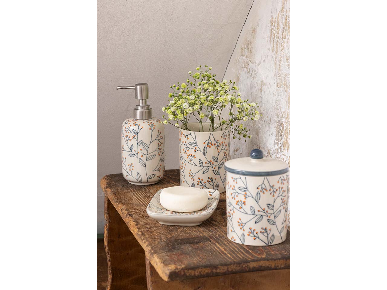 Die stilvolle Aufbewahrungsdose mit filigranem, handgestempeltem Muster bringt dezente Eleganz ins Badezimmer. Sie fügt sich harmonisch in verschiedene Raumkonzepte ein und sorgt für einen Hauch von Ästhetik. Die Dose mit praktischem Deckel bietet viel Stauraum zum Verstauen von Utensilien und sieht dazu einfach toll aus. B 8 x T 8 x H 12 cm.