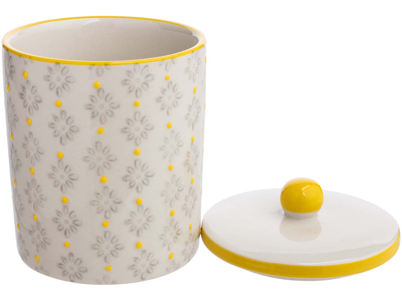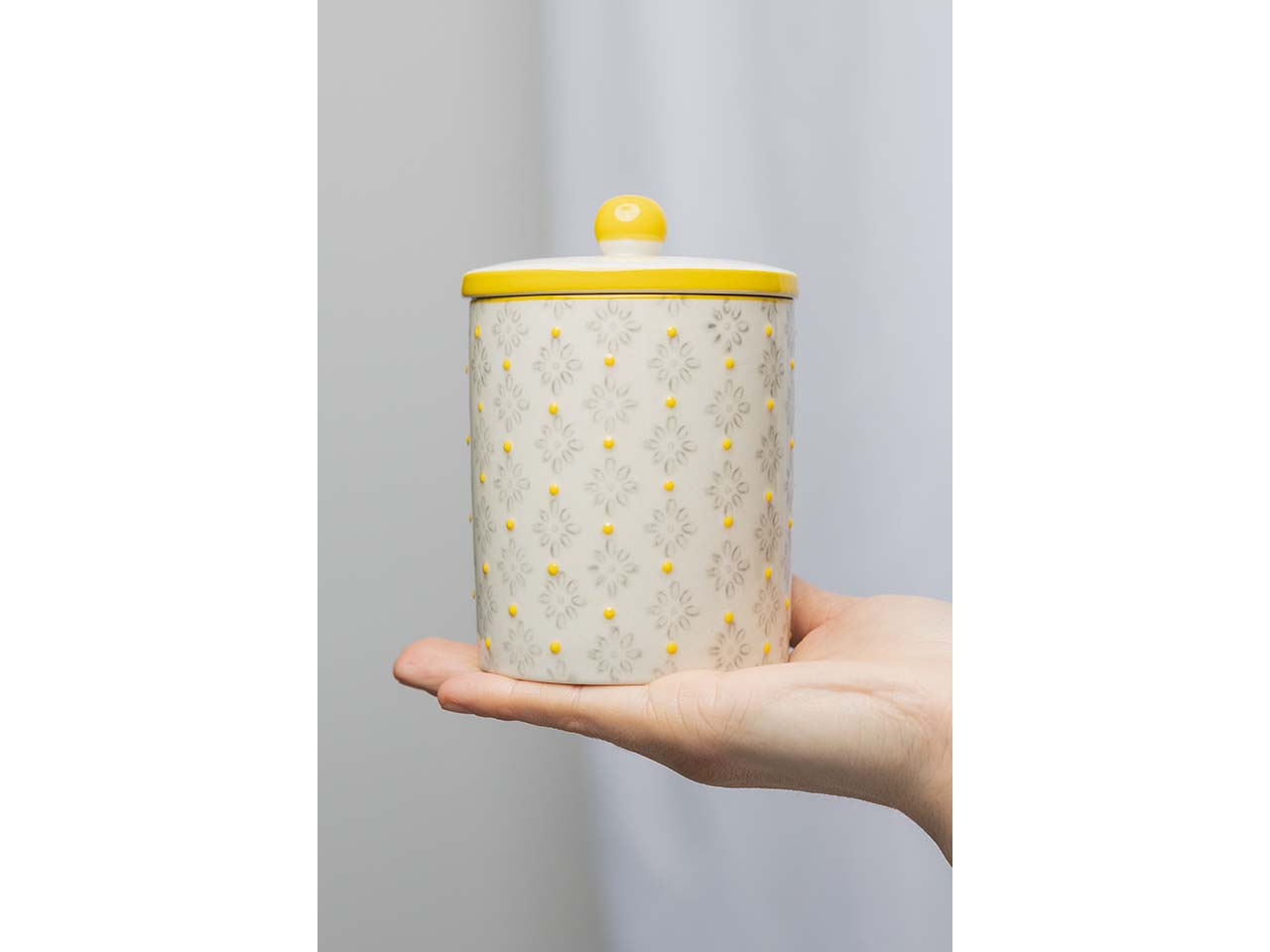 Diese Aufbewahrungsdose mit feinem, handgestempeltem Muster bringt verspielte Eleganz ins Badezimmer. Dank ihres zeitlosen Designs fügt sie sich nahtlos in verschiedene Einrichtungsstile ein und setzt stilvolle Akzente. Der praktische Deckel sorgt dafür, dass kleinere Alltagsgegenstände ordentlich verstaut werden können, während die Dose selbst durch ihre ästhetische Wirkung zu einem dekorativen Highlight wird. B 8 x T 8 x H 12 cm.