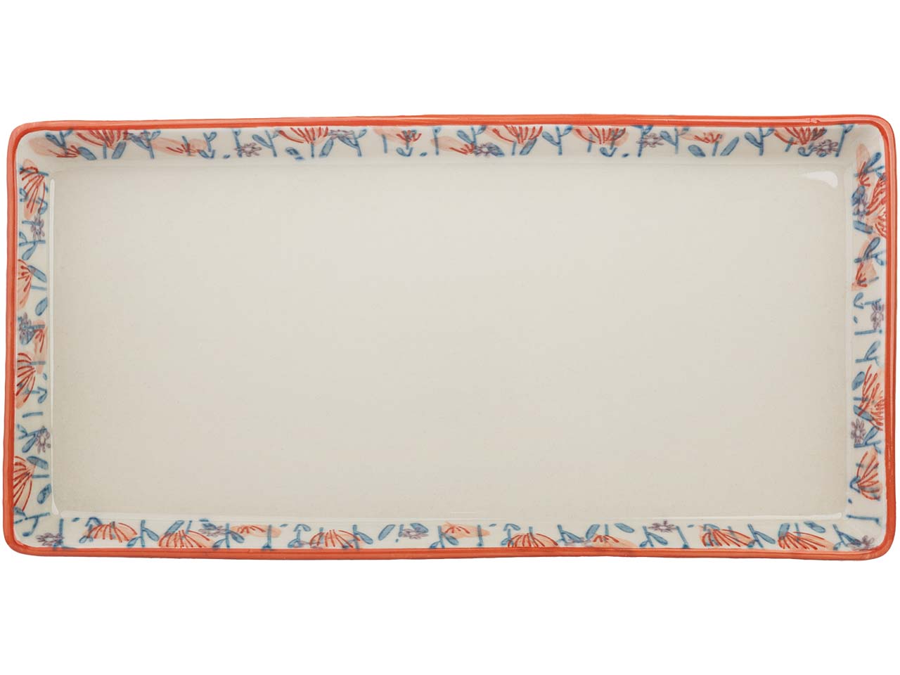 Die rechteckige Badablage ist mit ihrem handgestempelten Muster ein optisches Highlight im Badezimmer - und dazu noch richtig praktisch. Sie bietet viel Platz, um z.B. Pflegeprodukte ordentlich aufzubewahren. Die Ablage ist aus Steingut gefertigt und dadurch robust und langlebig.