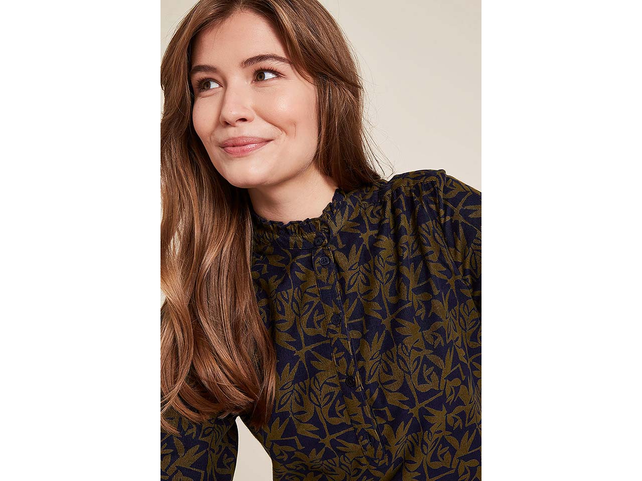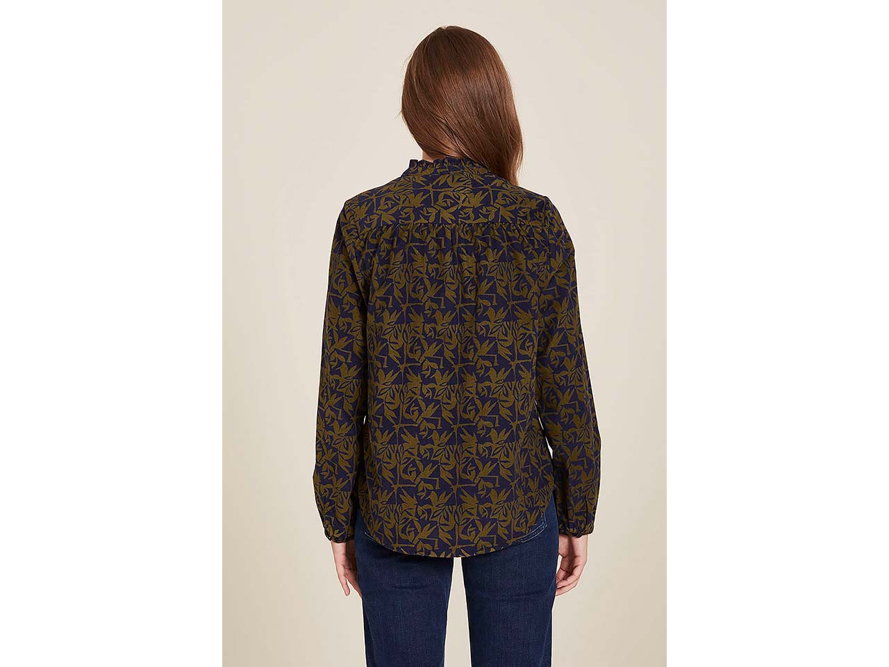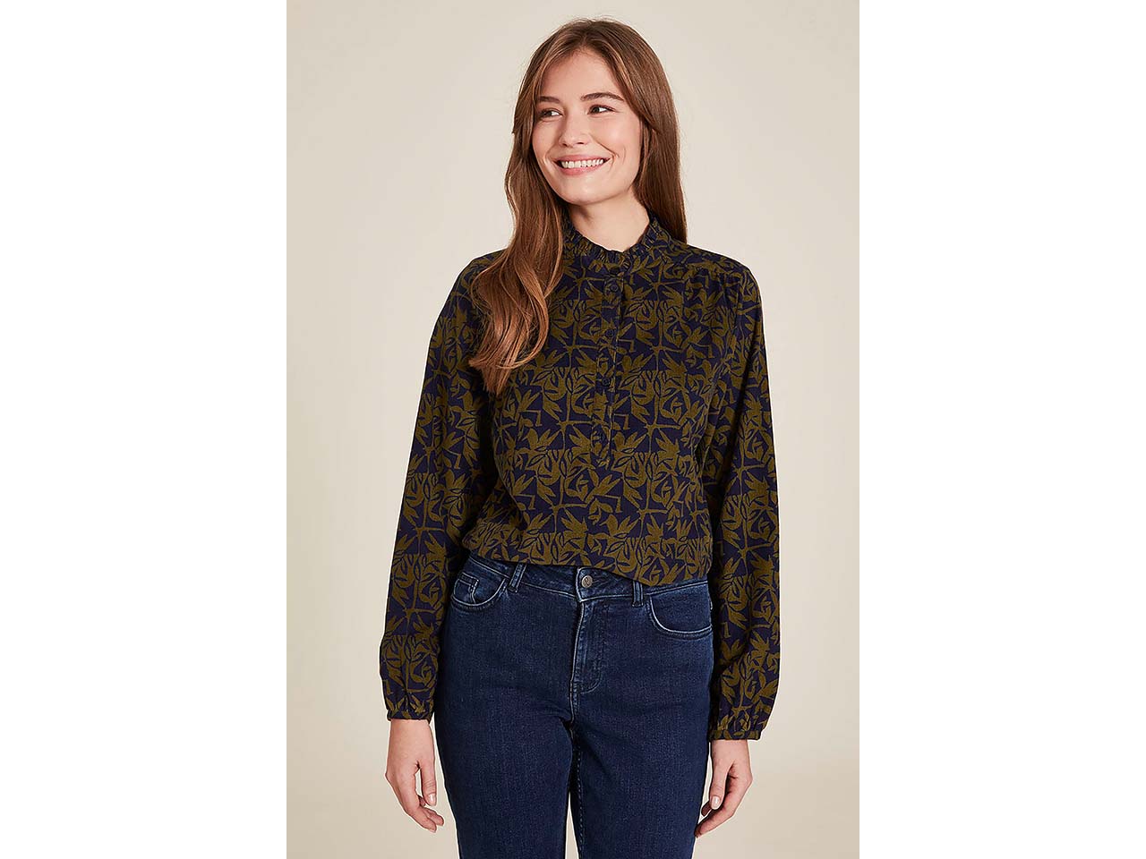 tranquillo Bio-Damen-Cord-Bluse mit Rüschen-Kragen