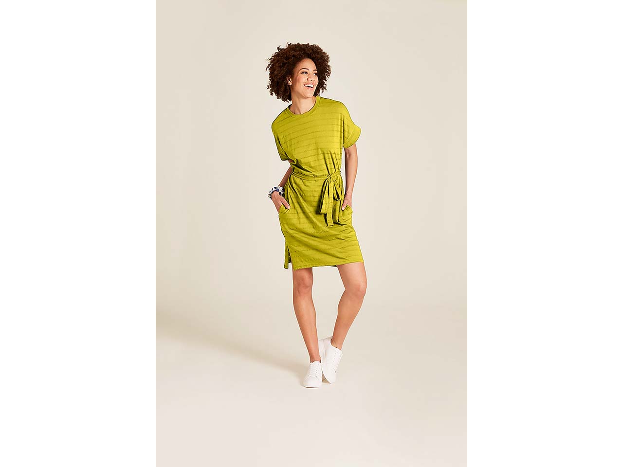 - Gerade geschnittenes Mini-Kleid mit Bindegürtel