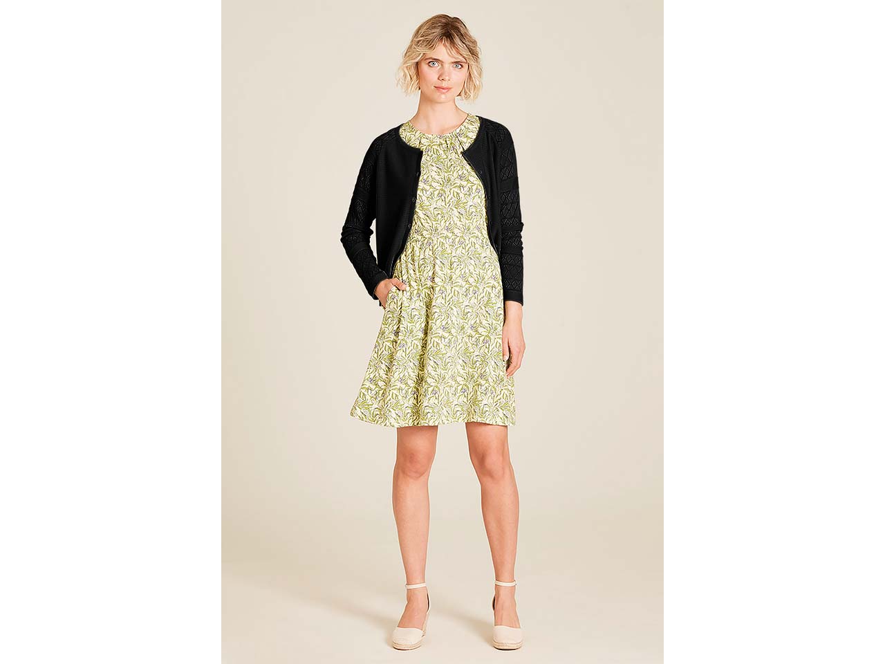 Diese leichte, luftige Strickjacke aus 100 % GOTS-zertifizierter Bio-Baumwolle komplettiert jedes Outfit. Sie schenkt an kühleren Tagen angenehme Wärme und sorgt optisch für modische Akzente. Die Ärmel mit Ajourmuster verströmen eine gewisse Eleganz und der raffinierte Einsatz in Streifenoptik ist ein echter Blickfänger. Abgerundet wird das weiche, bequeme Oberteil durch den klassischen Rundhalsausschnitt. Die Strickjacke kann offen oder zugeknöpft getragen werden – ein vielseitiger Allrounder für jeden Tag!